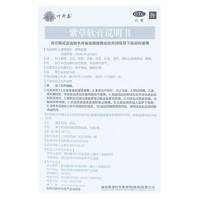 📚 健民叶开泰紫草软膏烧伤烫伤膏正品溃疡软膏软膏药外用婴儿紫草膏
