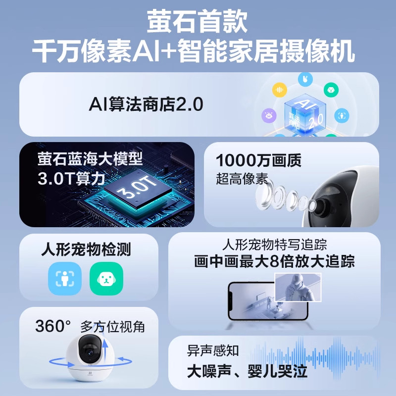 📚 海康威视下萤石C6C无线室内监控全景家用手机远程摄像头高清夜视