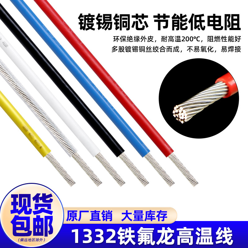 📚 1332铁氟龙线高温线阻燃30 24 20 18 16 12AWG特氟龙镀锡铜电子线