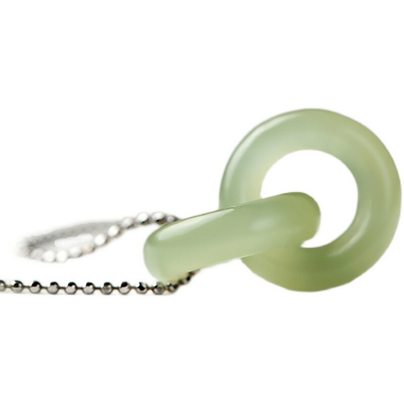 📚 环环相扣和田青玉双环纯银S925-双青环吊坠耳坠