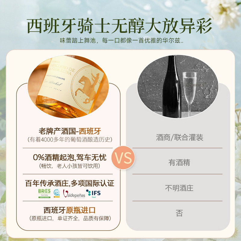 📚 西班牙原瓶进口无醇起泡酒0酒精气泡酒甜白葡萄汁礼盒送礼