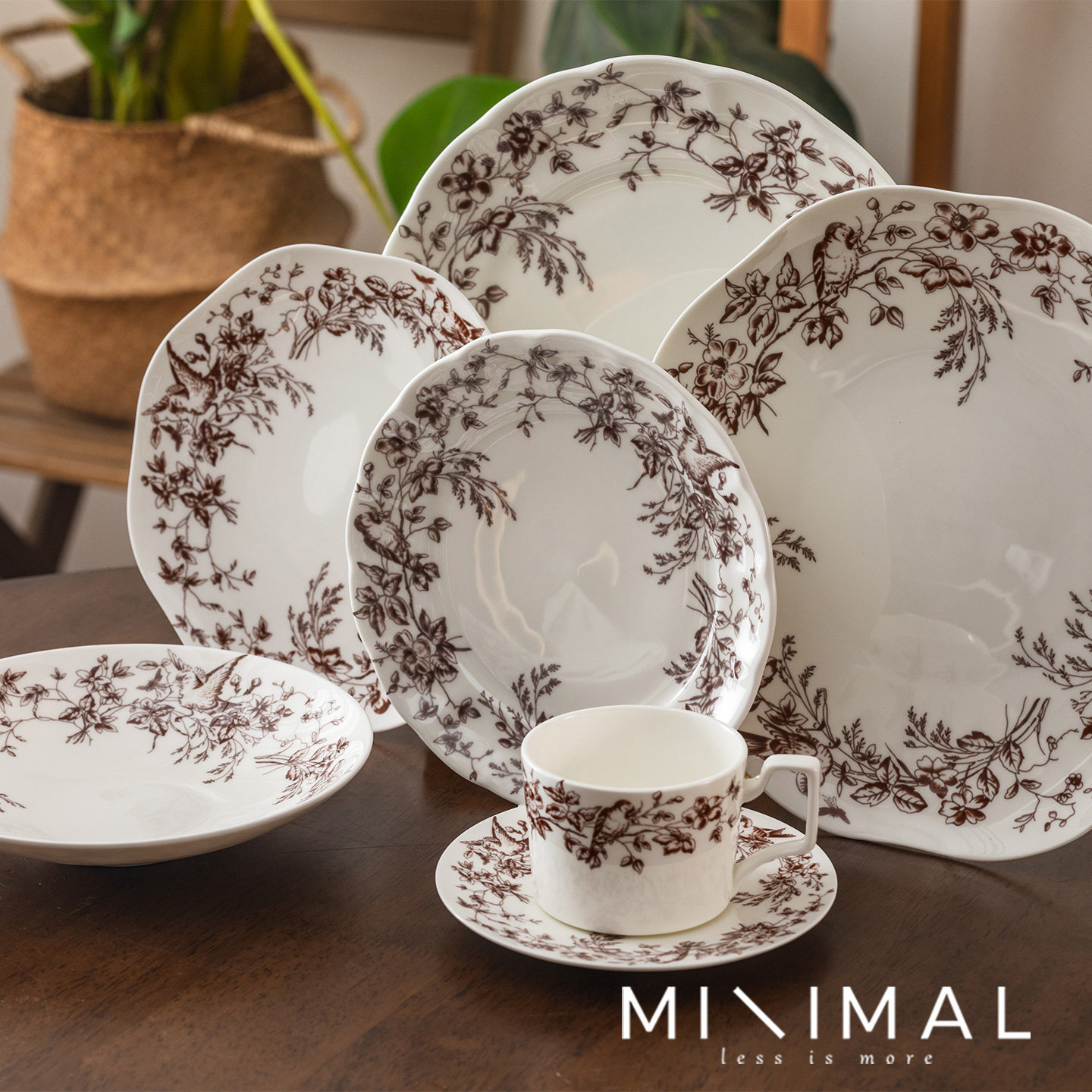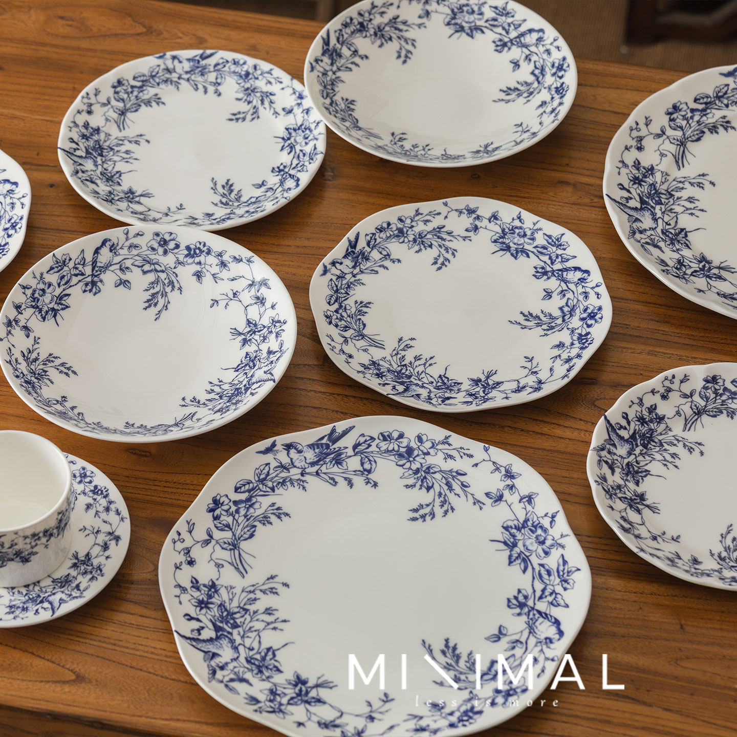 📚 法式复古陶瓷餐具盘子中古西餐盘高级感红蓝色花鸟图案水果甜品盘