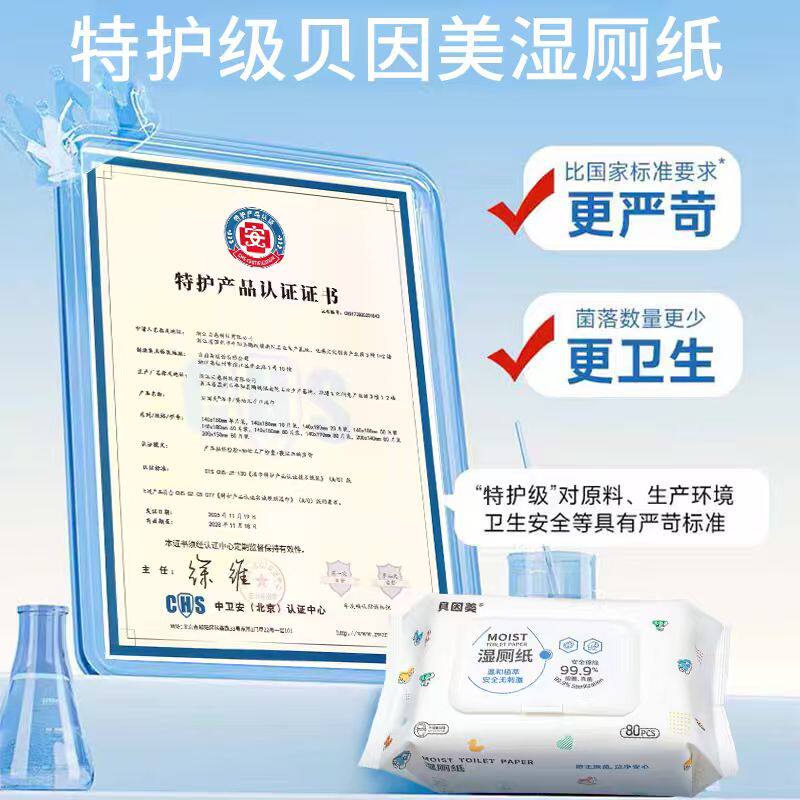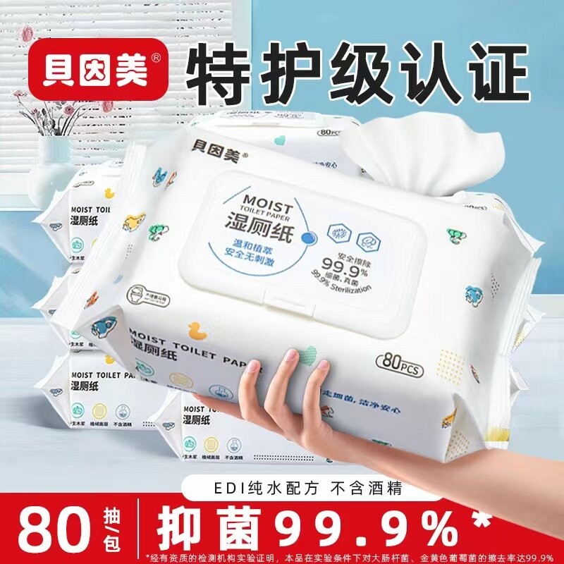 📚 贝因美湿厕纸家庭大包装湿巾擦屁股女性男士专用洁厕所纸可冲马桶