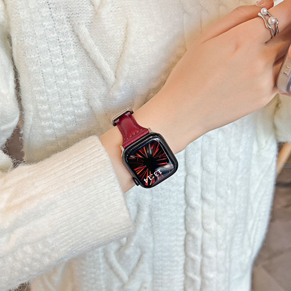 📚 适用苹果手表s10表带女款s11新年红iwatch9手表带女生s8秋冬applewatch9创意新款s7高级感iwatchse腕带s6红色