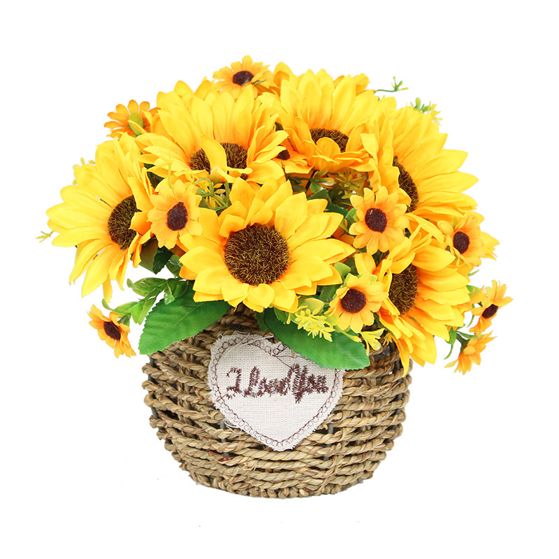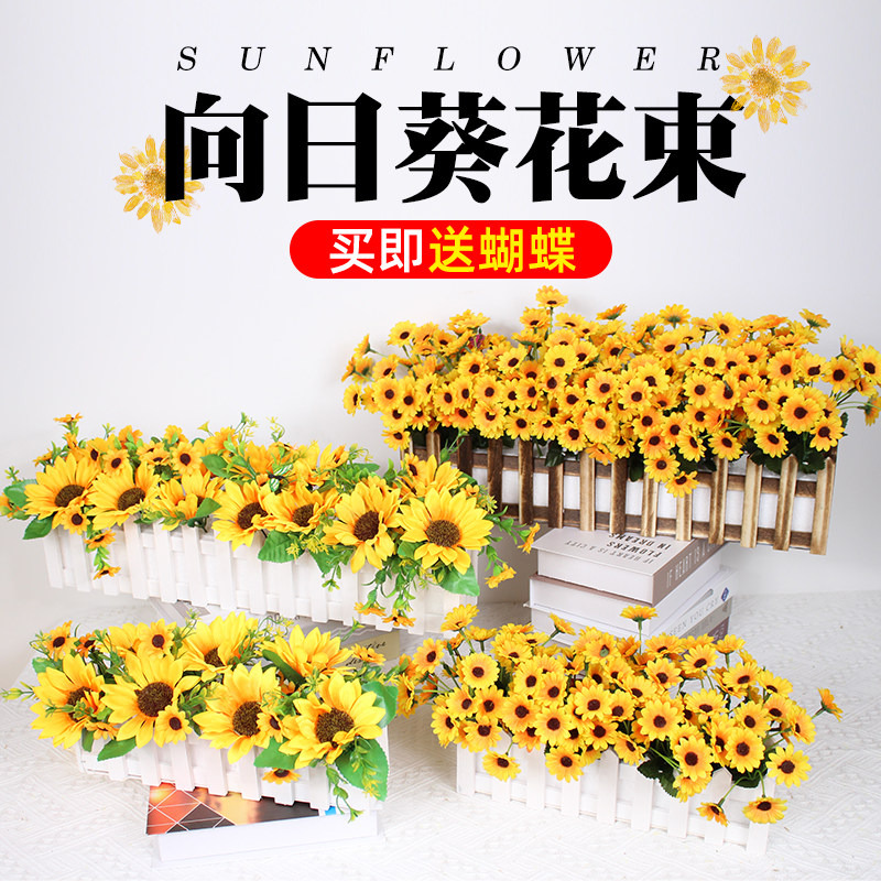 📚 小向日葵仿真花摆件太阳花假花迷你摆设栅栏花小花束客厅餐桌装饰