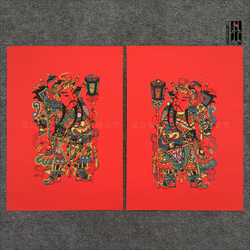📚 正宗手工拓印武强年画郁垒神荼秦琼敬德红底宣纸传统武门神老年画