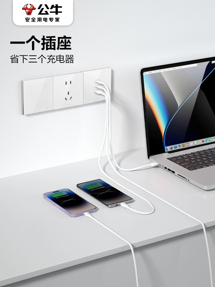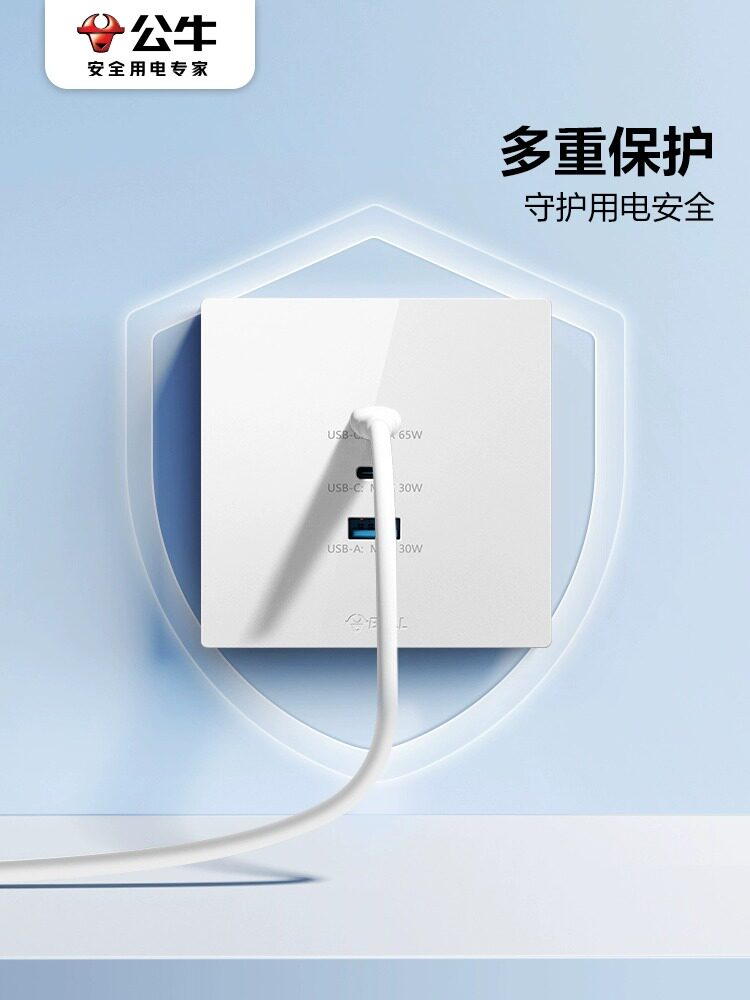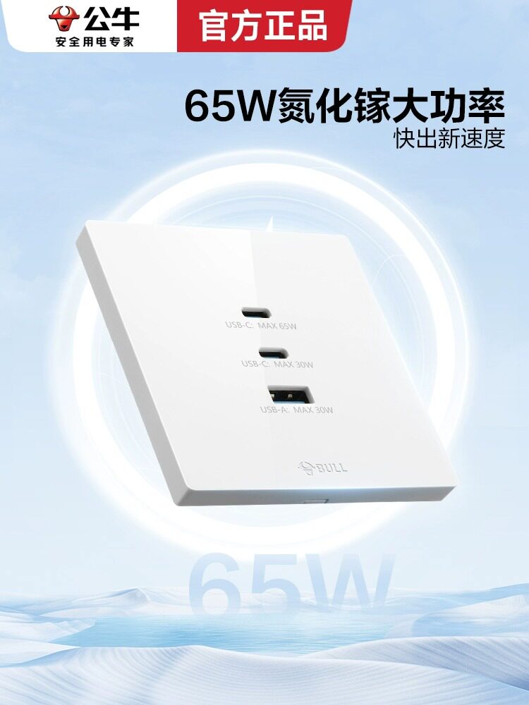 📚 公牛typec插座墙壁面板PD快充氮化镓65W带usb接口的充电86型暗装