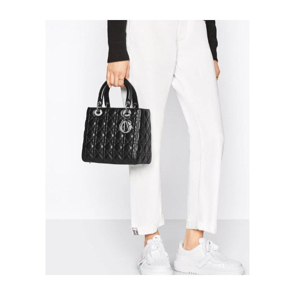 📚 香港直邮Christian Dior迪奥戴妃包Lady黑色漆皮中号手提包时尚