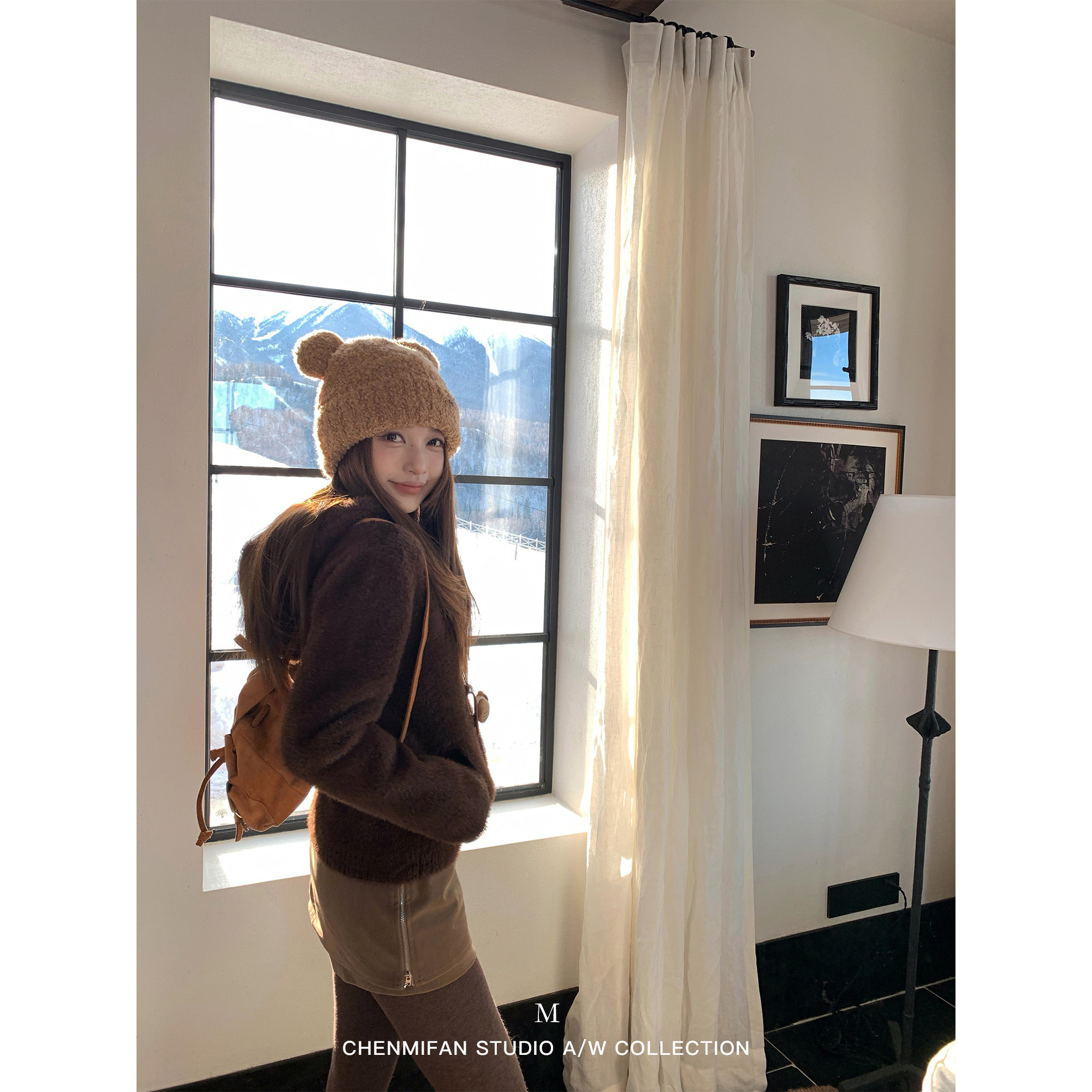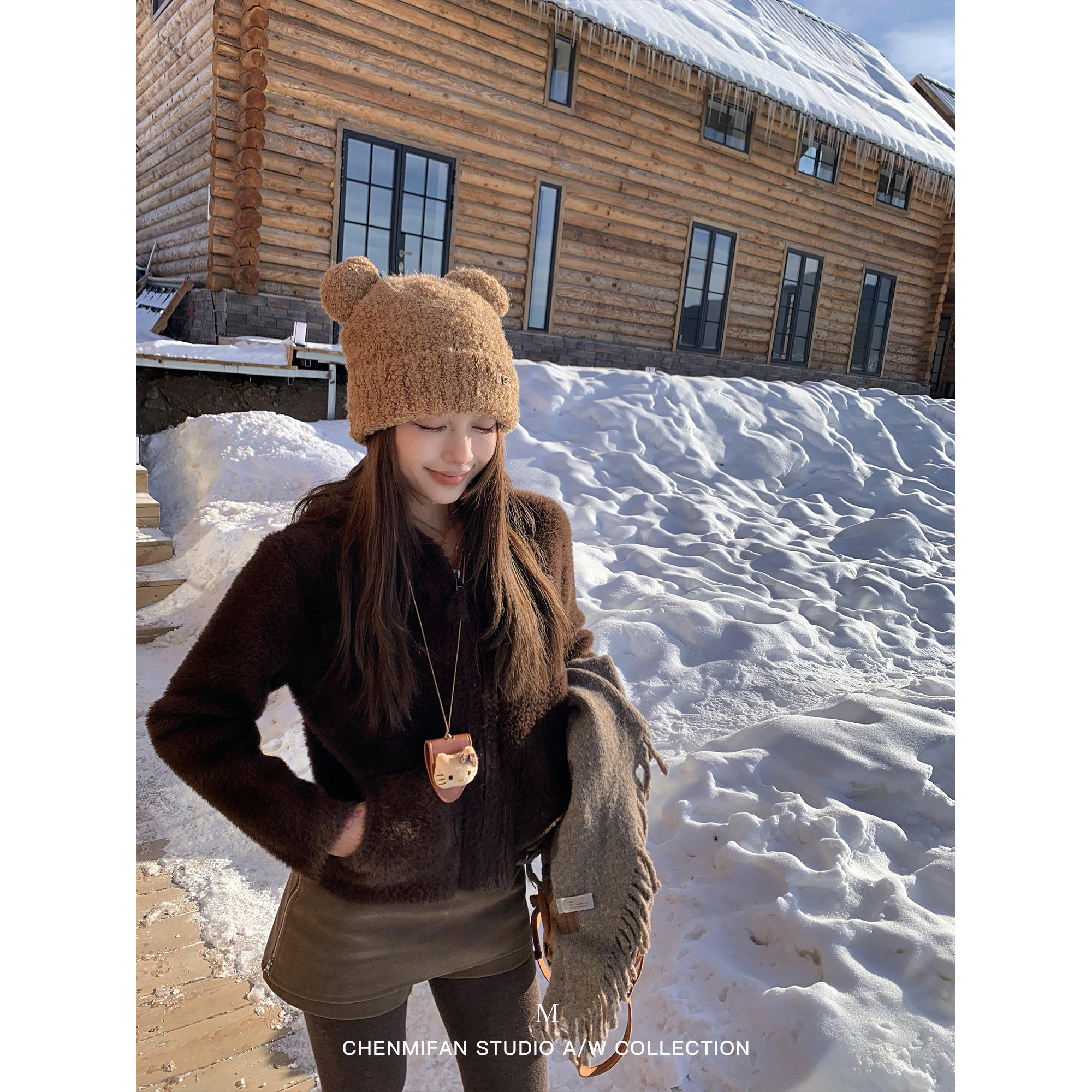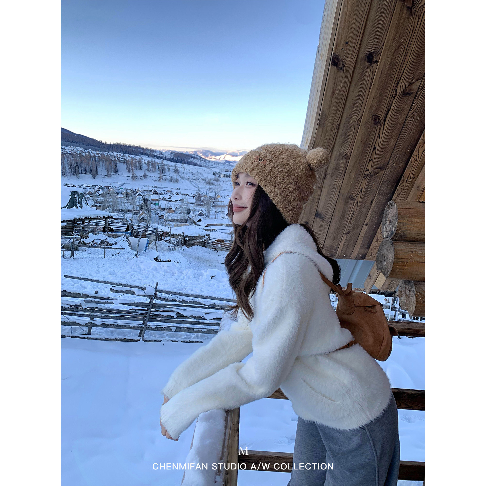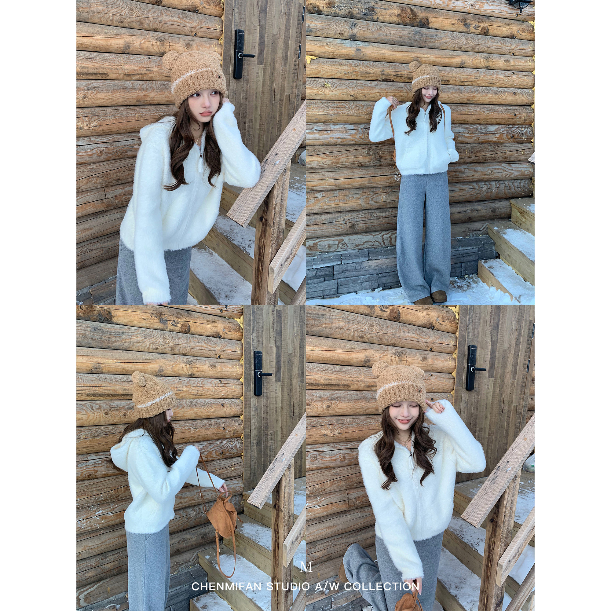 📚 辰米范 卫城落日 柔软仿貂毛连帽毛衣开衫女舒适气质毛毛外套