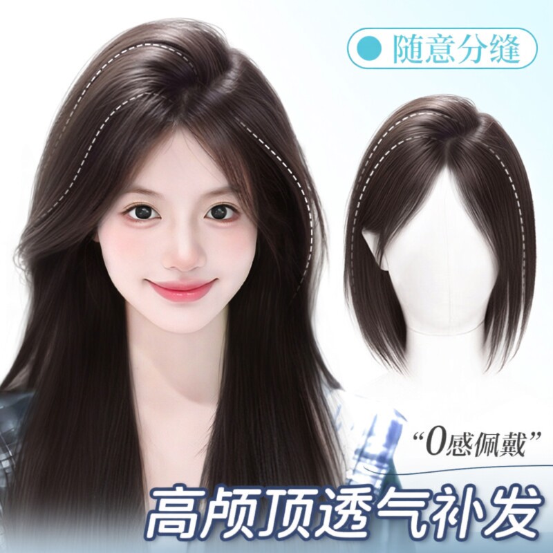 📚 假发女片头顶八字刘海补发片增发量蓬松仿真发自然高颅顶假发片
