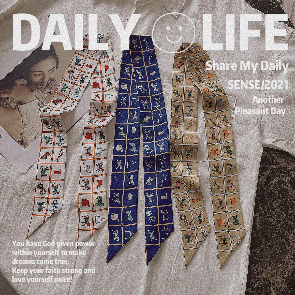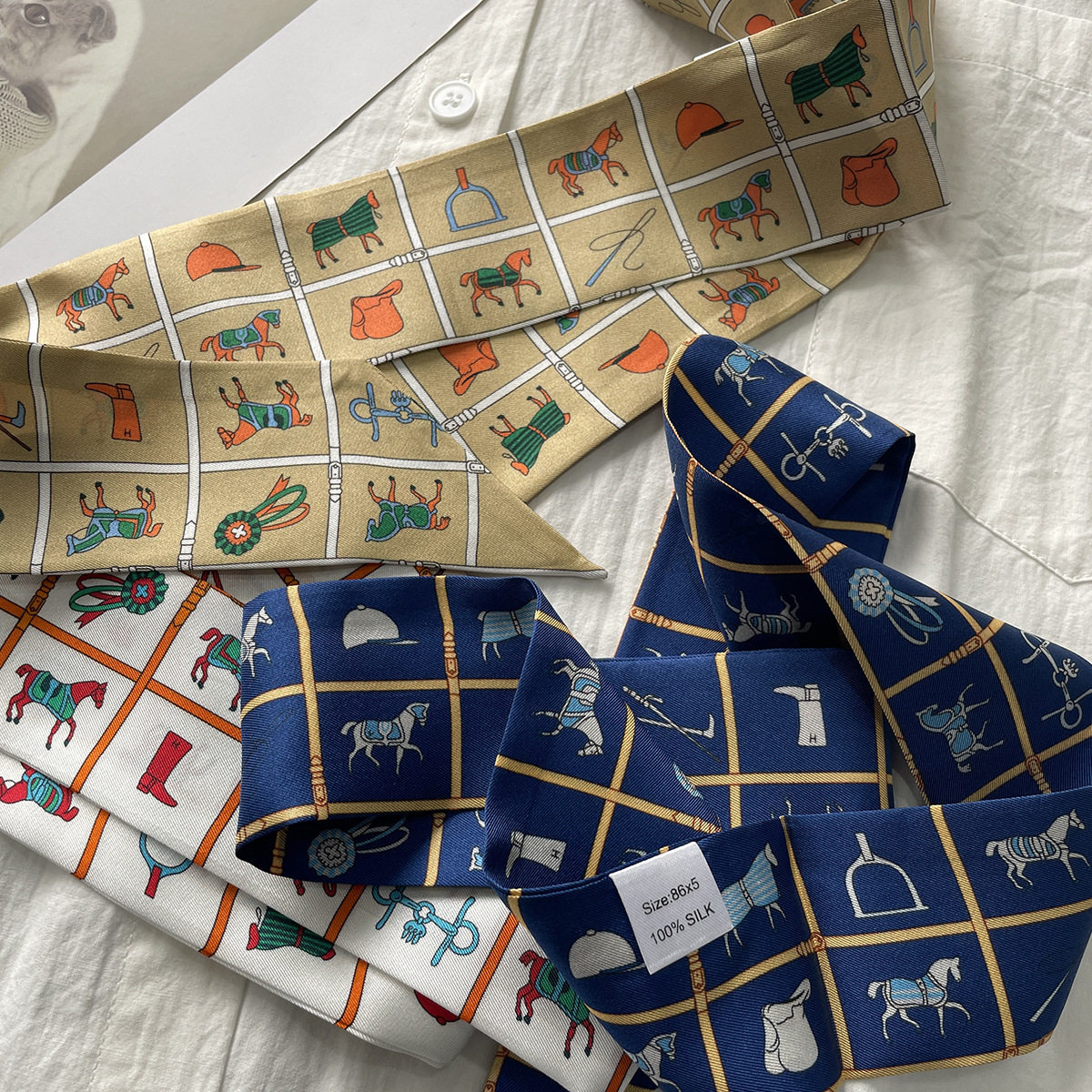 📚 新款秋冬真丝丝巾骏马的披挂100%桑蚕丝飘带女士围巾绑包绑发丝带