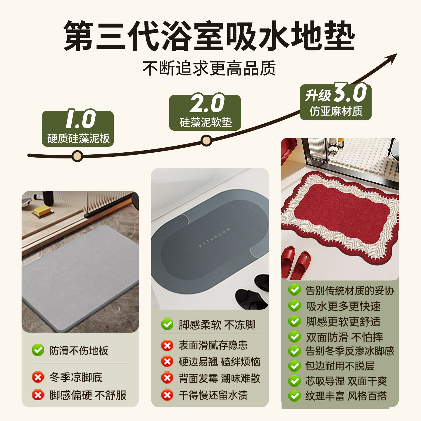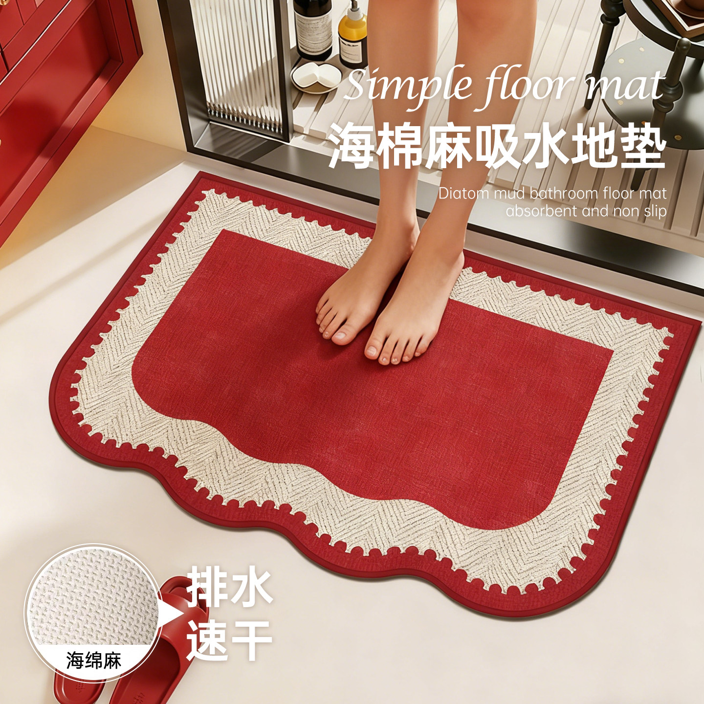 📚 马年浴室地垫2026新款新年红色卫生间门口吸水垫防滑洗澡专用脚垫