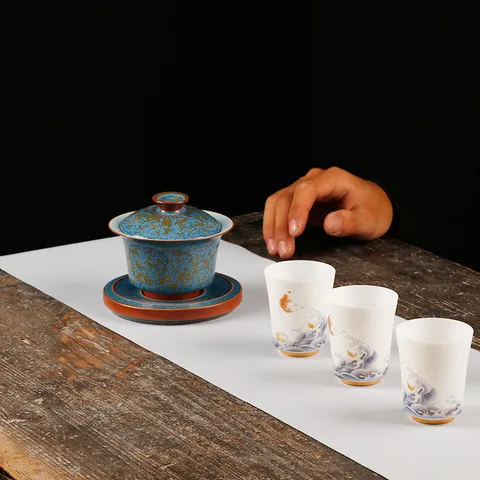 47¥ MF287 V80pUEqipFF¥ https://m.tb.cn/h.i3JV9yi 翠蓝敬茶碗茶具三才碗浮玉盖碗景德镇陶瓷泡茶器窑变复古手工家用 --------------------- 【原售价】88.4元 【现售价】88.4元。