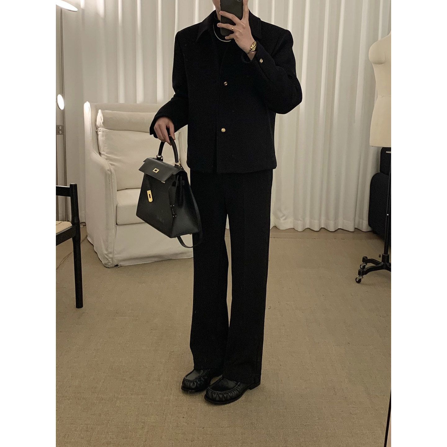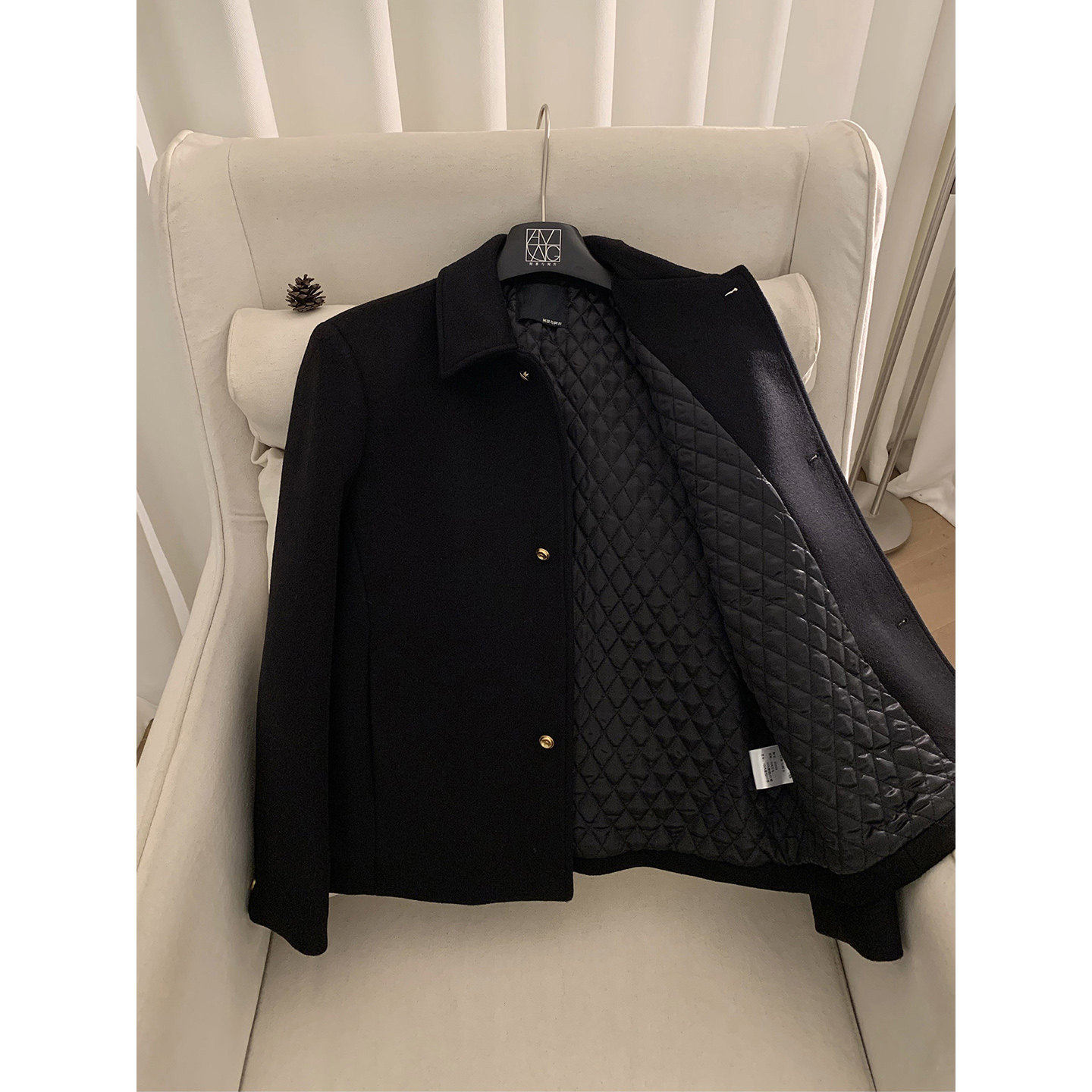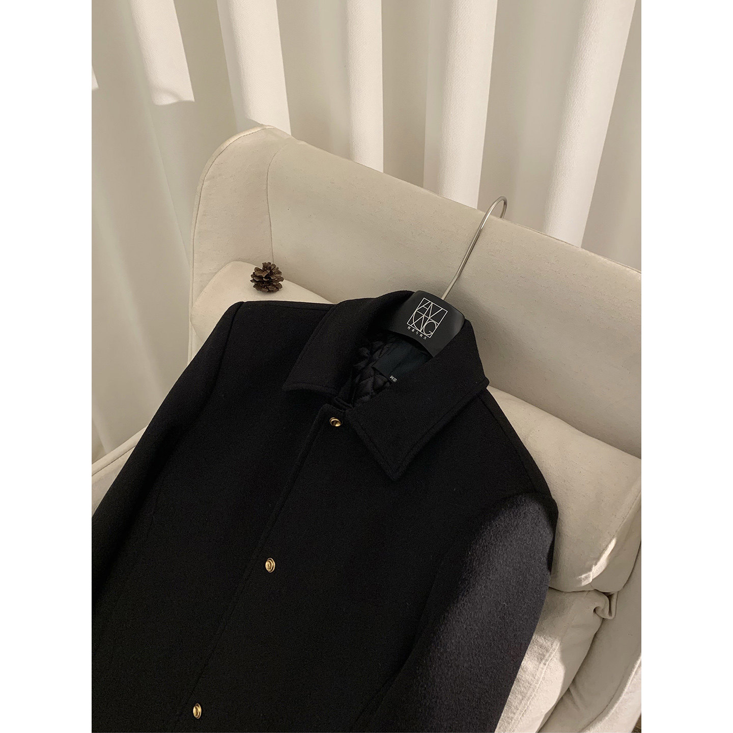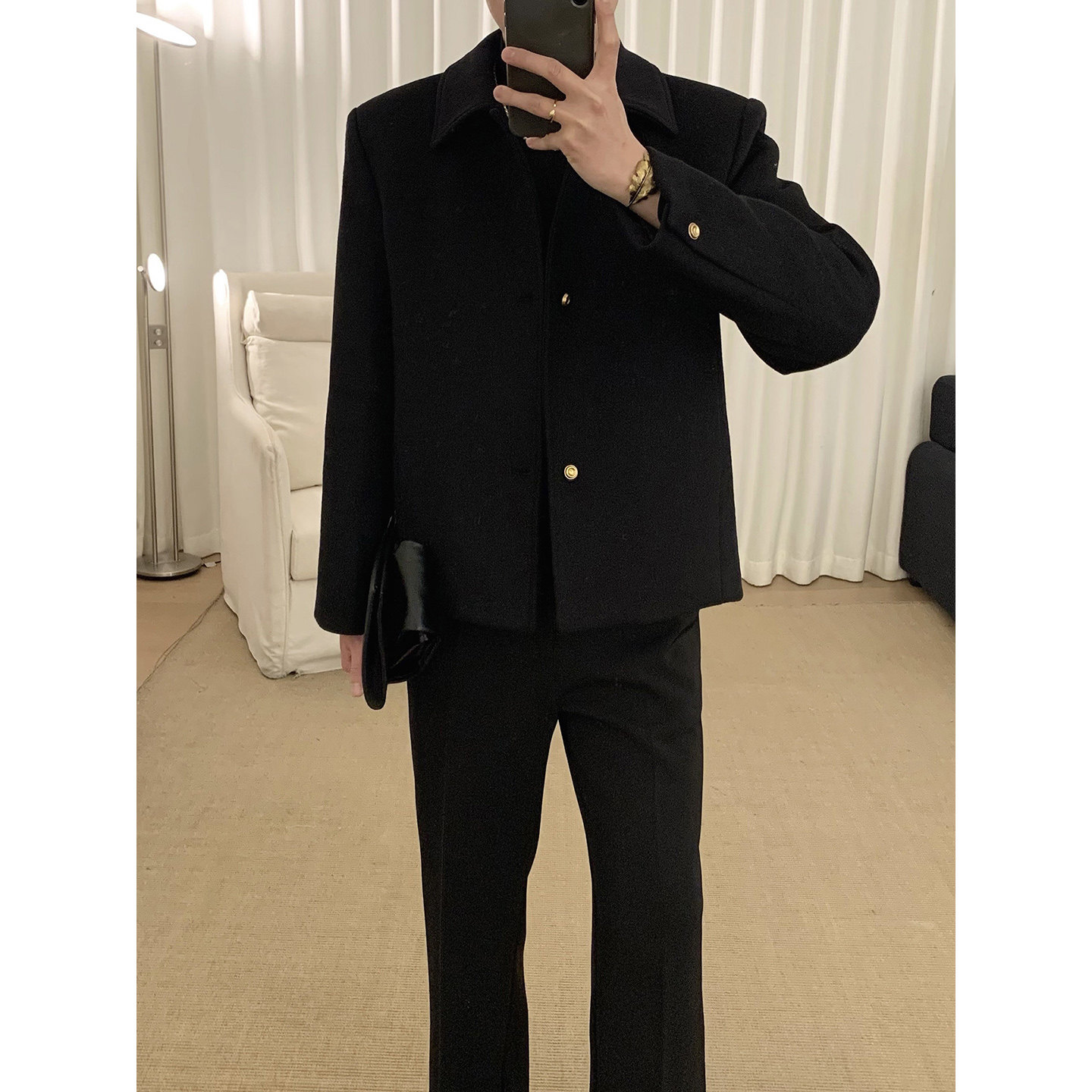 📚 阿茶与阿古【净水羊毛】黑色羊毛外套男冬季夹棉加厚韩版夹克上衣