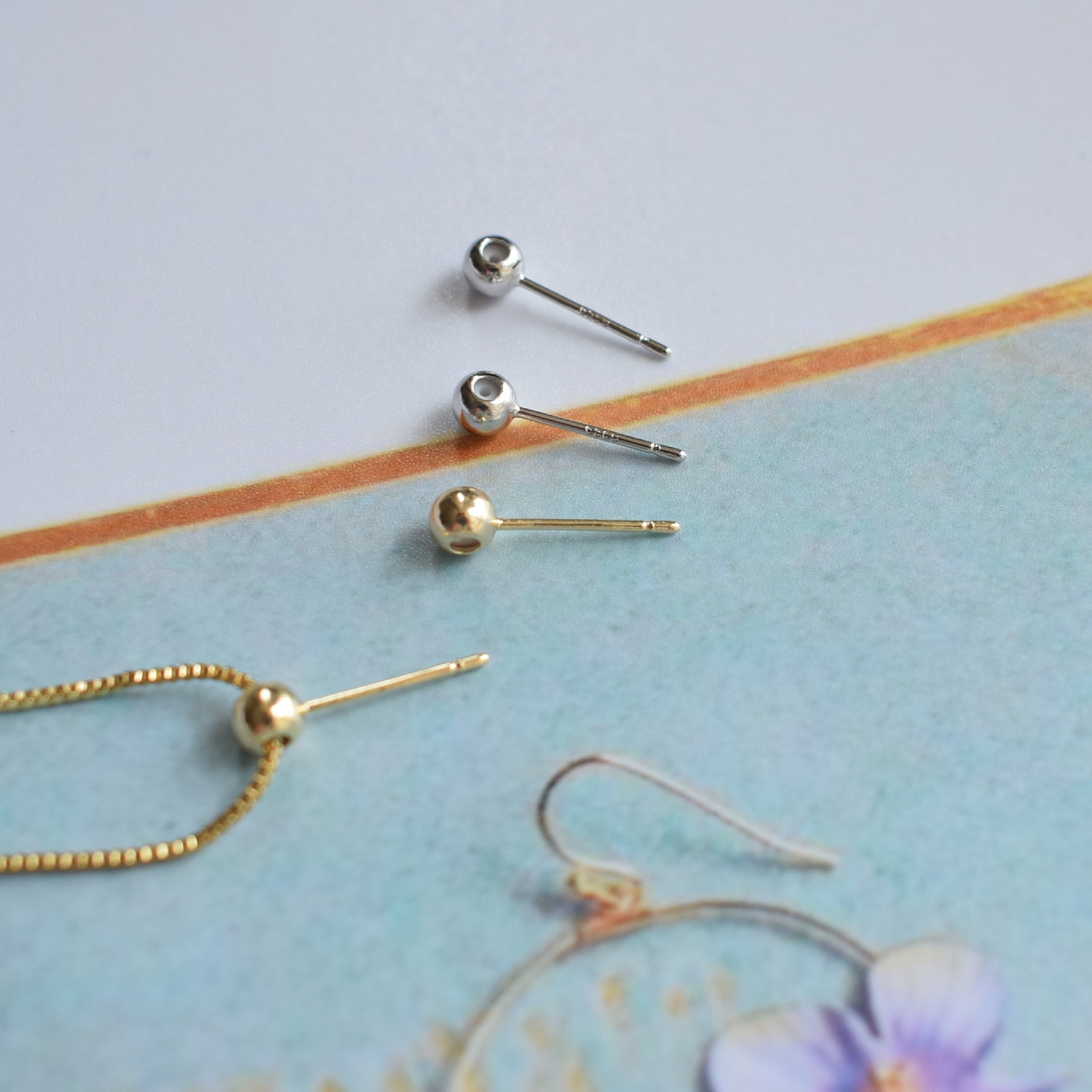 📚 铜包14k真金保色 白金包金925银针硅胶可移动定位diy耳钉配件