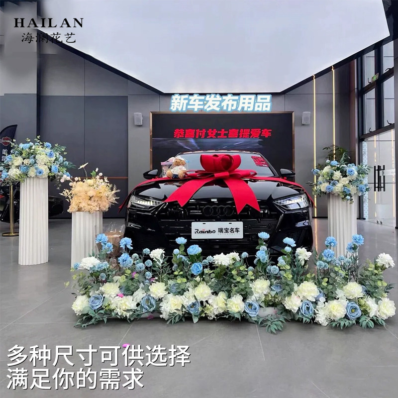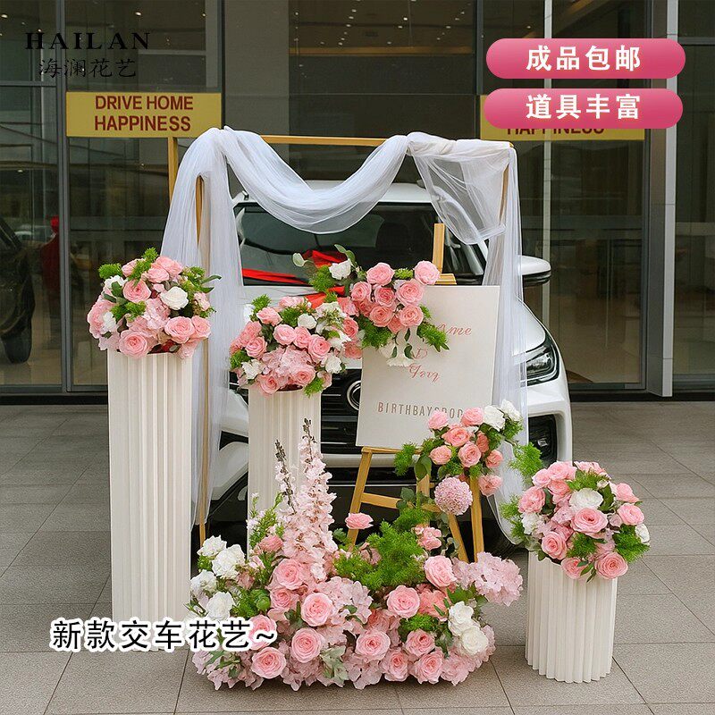 📚 交车仪式布置仿真花4s店假花装饰场景氛围布置罗马柱花柱迎宾牌