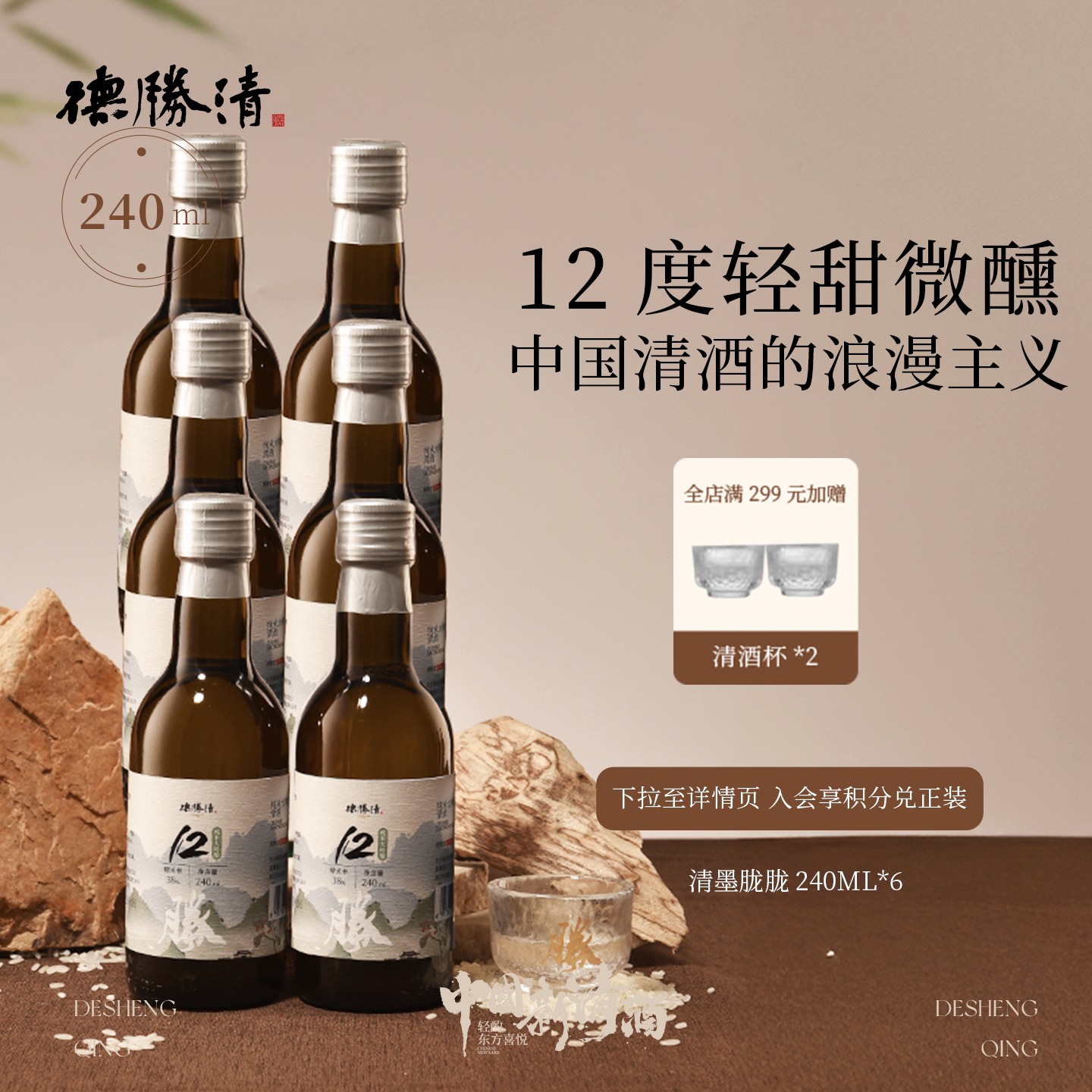📚 德胜清纯米大吟酿38清墨胧胧240ml国产清酒三割八分12度 双11