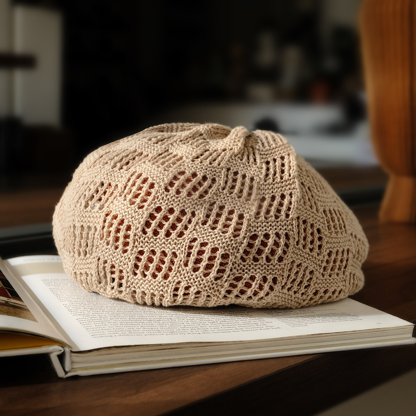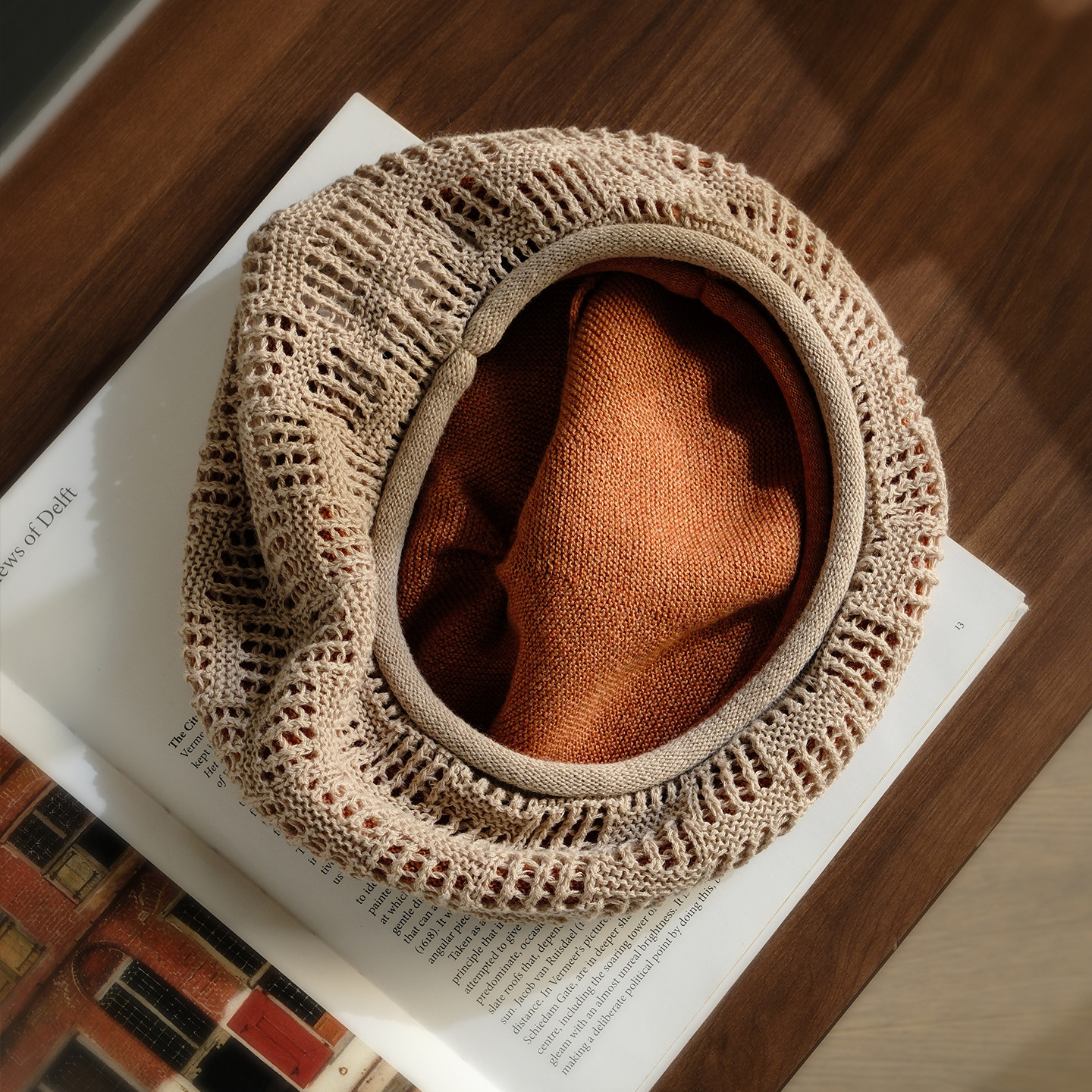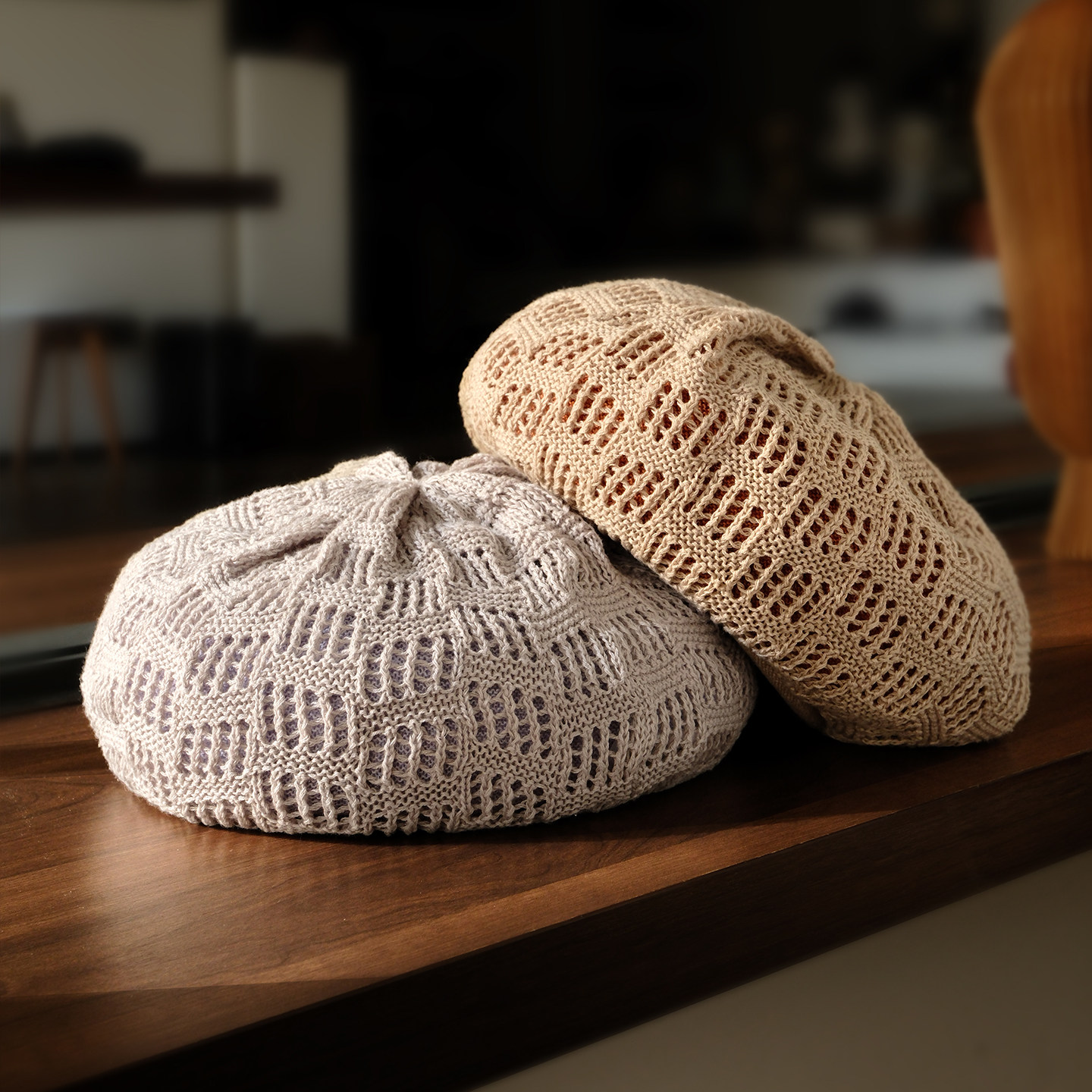 📚 Belles Modes日本进口棉麻镂空针织贝雷帽透气舒适春夏帽子新款