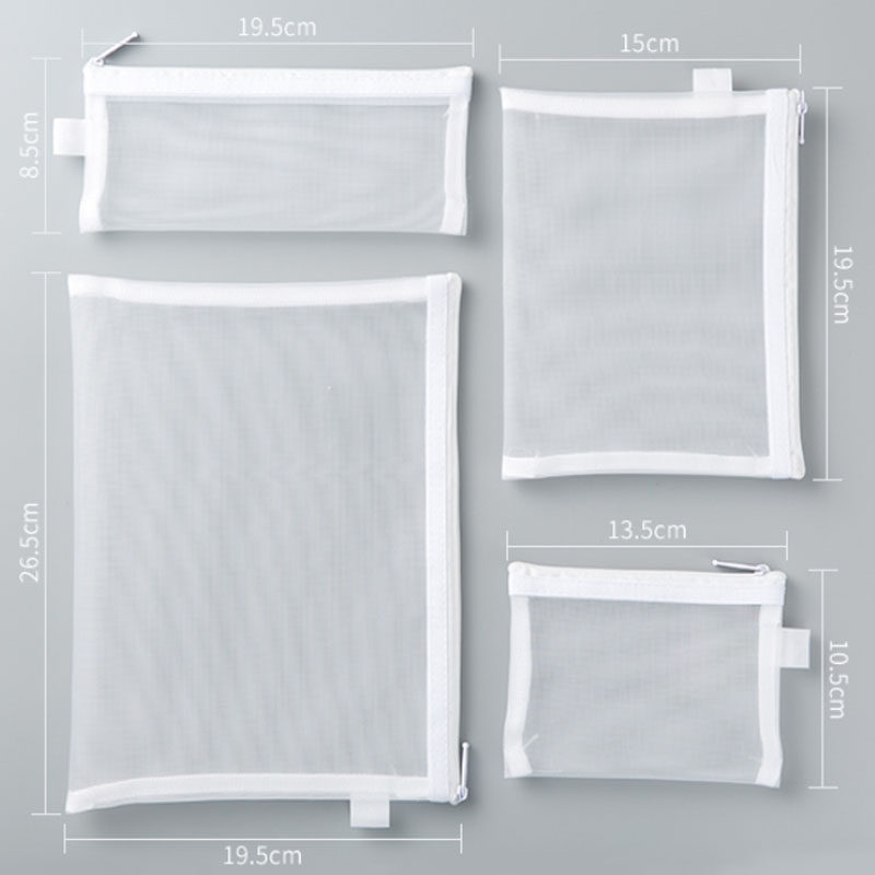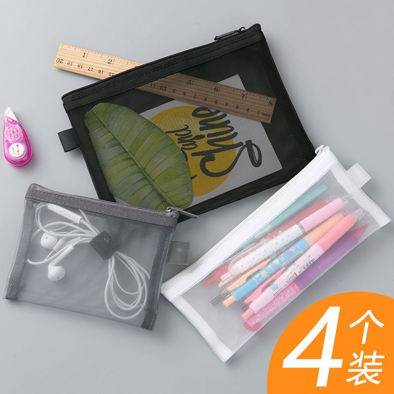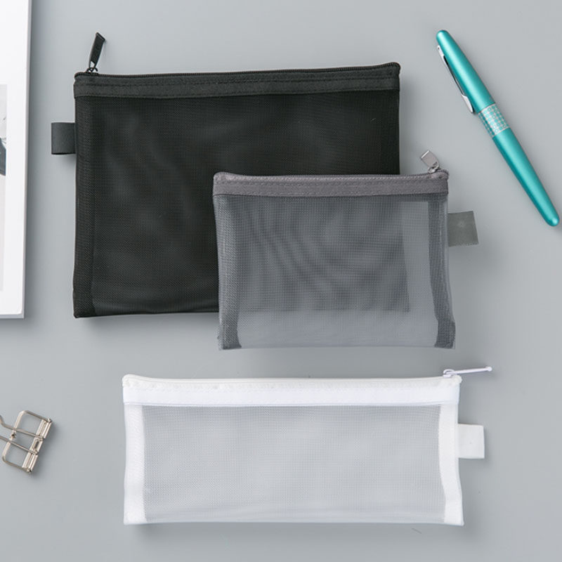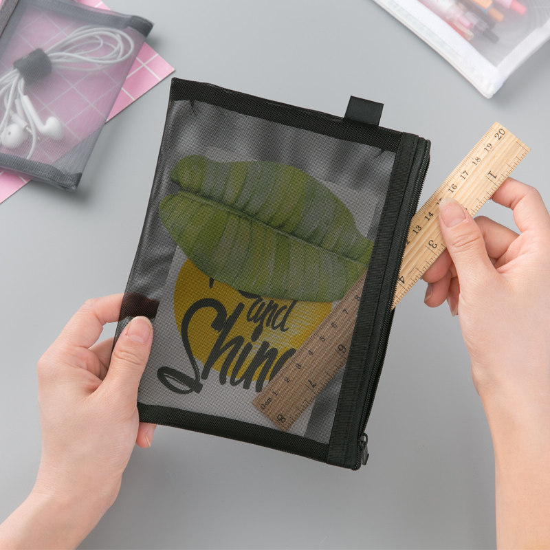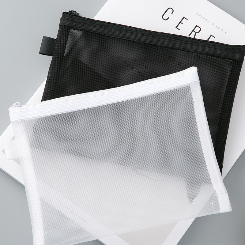 📚 科目笔袋女ins冷淡风简约透明网纱网格拉链袋大容量B5试卷收纳袋无印风黑白学生用考试文具袋文件档案资料袋