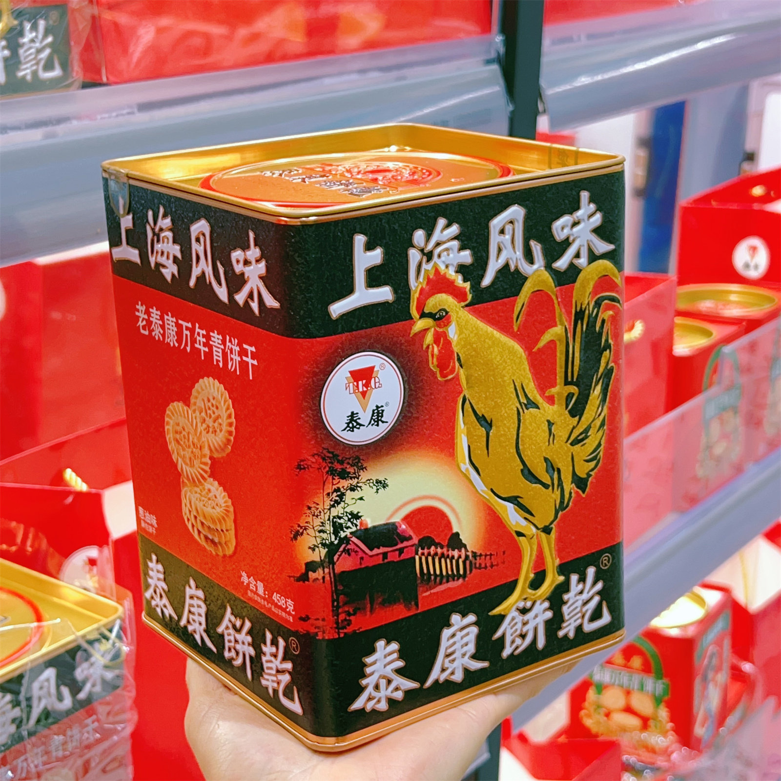 📚 泰康金鸡牌万年青饼干葱油味458g上海风味老泰康心酥脆饼干零食
