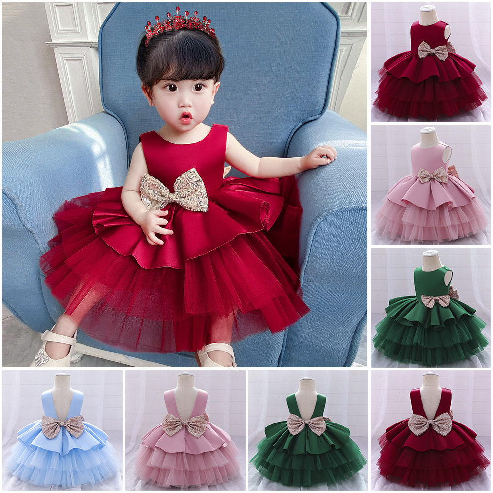 📚 亚马逊儿童公主裙礼服婚纱女童蛋糕蓬蓬洗礼服裙 宝宝周岁花童裙