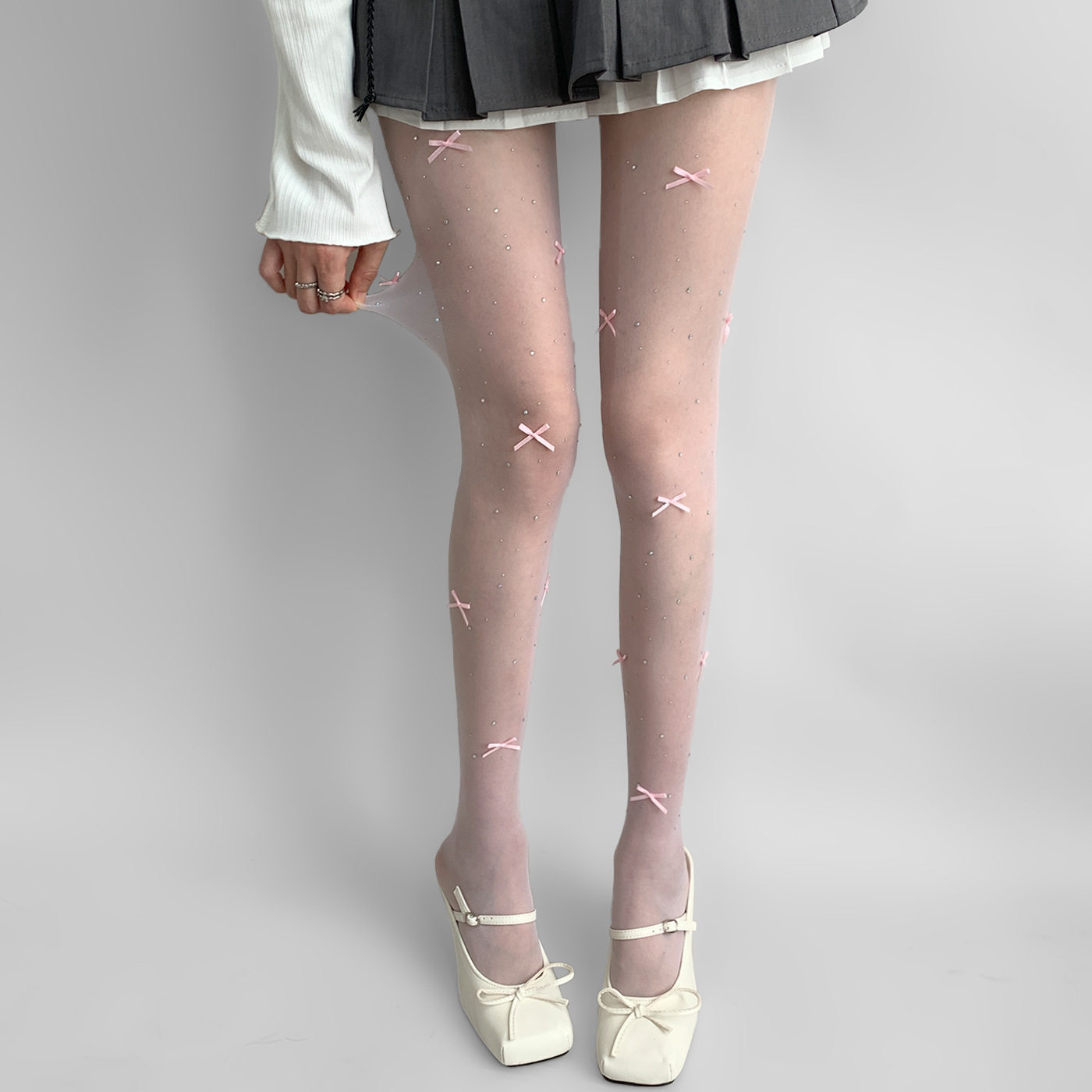 📚 妖怪森林lita蝴蝶结闪钻美肤袜烫钻打底连裤袜芭蕾风纯欲白色丝袜