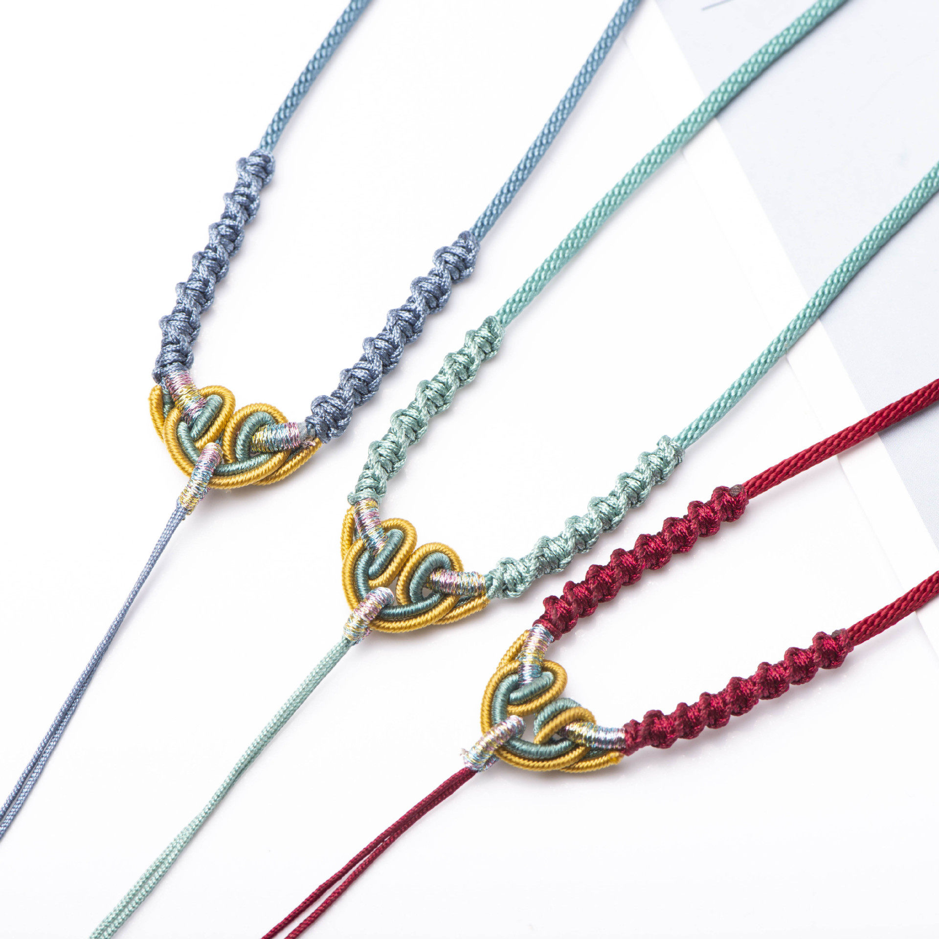 📚 手工编织男女挂绳儿童长命锁如意结吊坠红绳挂脖黄金玉坠绳子可