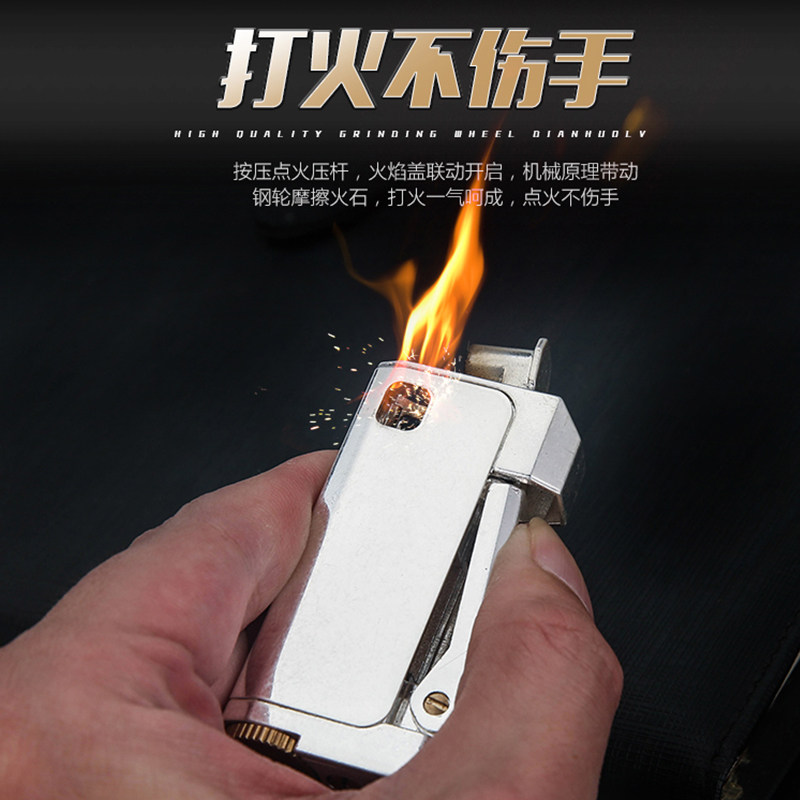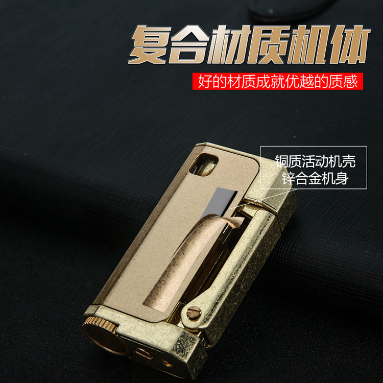 📚 百诚新款冷锋纯铜煤油防风打火机个性创意侧压点烟斗明火三面出火