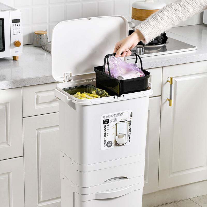 📚 家用双层厨房垃圾桶大容量干湿分离夹缝落地脚踏式带盖垃圾分类桶