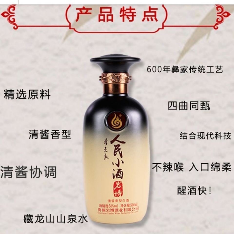 📚 贵州岩博人民小酒经典款53度500ml*6瓶整箱装 清酱香型纯粮食酒