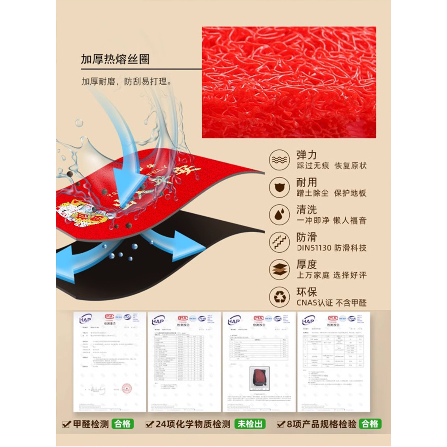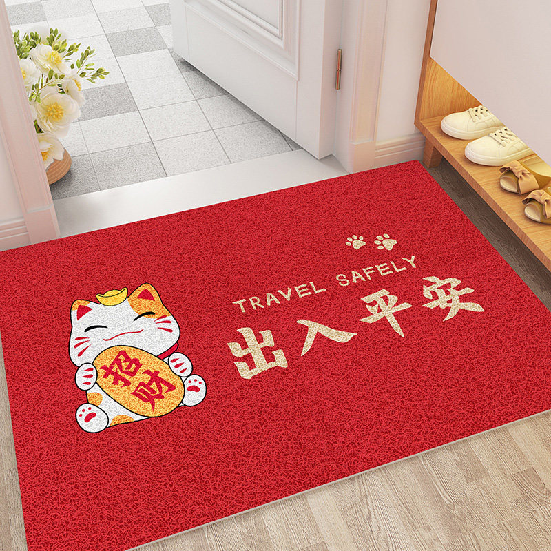 📚 丝圈地垫进门出入平安红色中式入户门垫家用门口耐脏蹭脚垫防滑垫