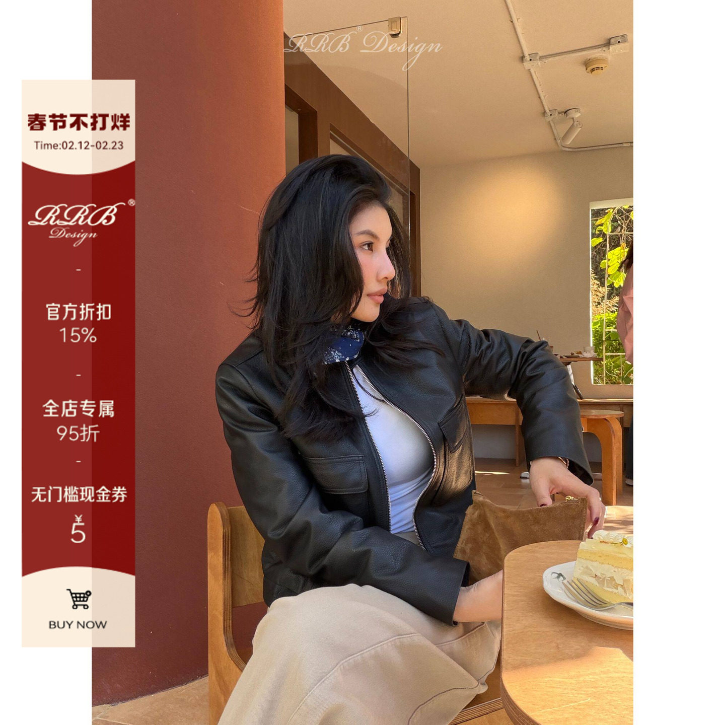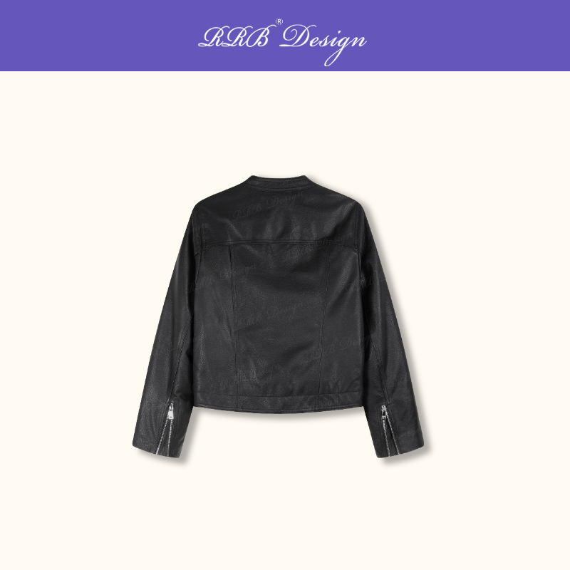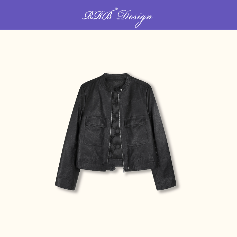 📚 RRB Design 100%头层荔枝纹羊皮修身显瘦酷飒机车皮衣羽绒外套