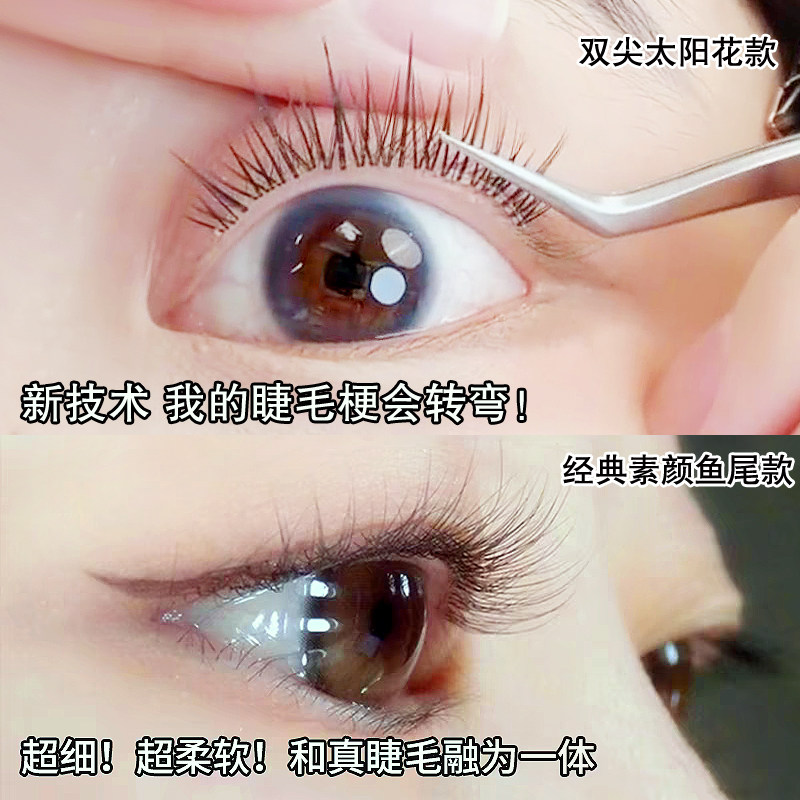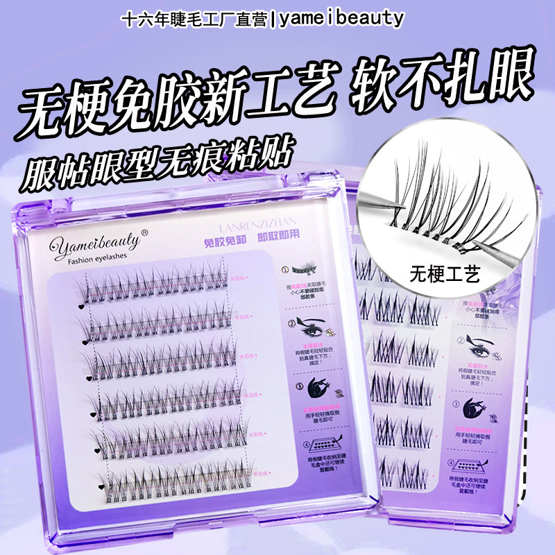 📚 软态无梗免胶假睫毛自粘超细貂绒懒人鱼尾太阳花睫毛自然妈生睫毛