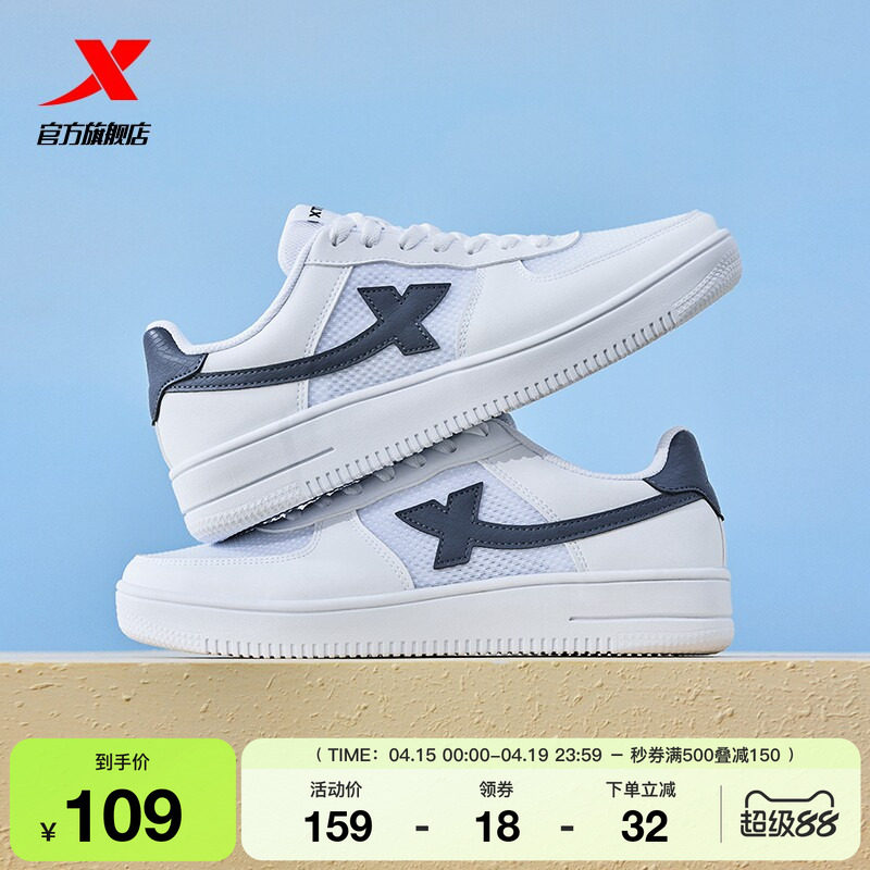 📚 特步空军一号情侣板鞋男鞋夏季新款休闲运动鞋女鞋网面透气小白鞋