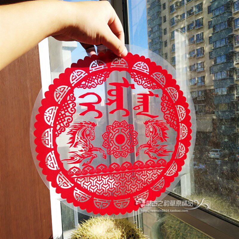 📚 蒙文贴纸 静电贴 马到成功福囍字蒙语剪J纸窗花蒙古族特色节日用