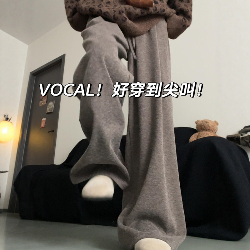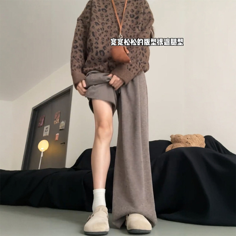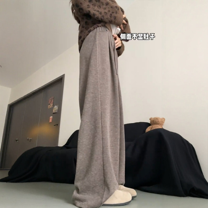 📚 胖mm大码咖色糯米裤女垂感针织毛巾加绒裤子美拉德慵懒软糯阔腿裤