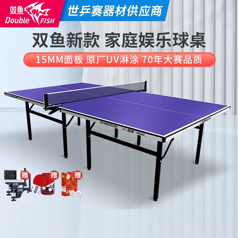 📚 双鱼牌乒乓球桌室内标准家用H590兵乓球台可折叠式家庭乒乓球案子