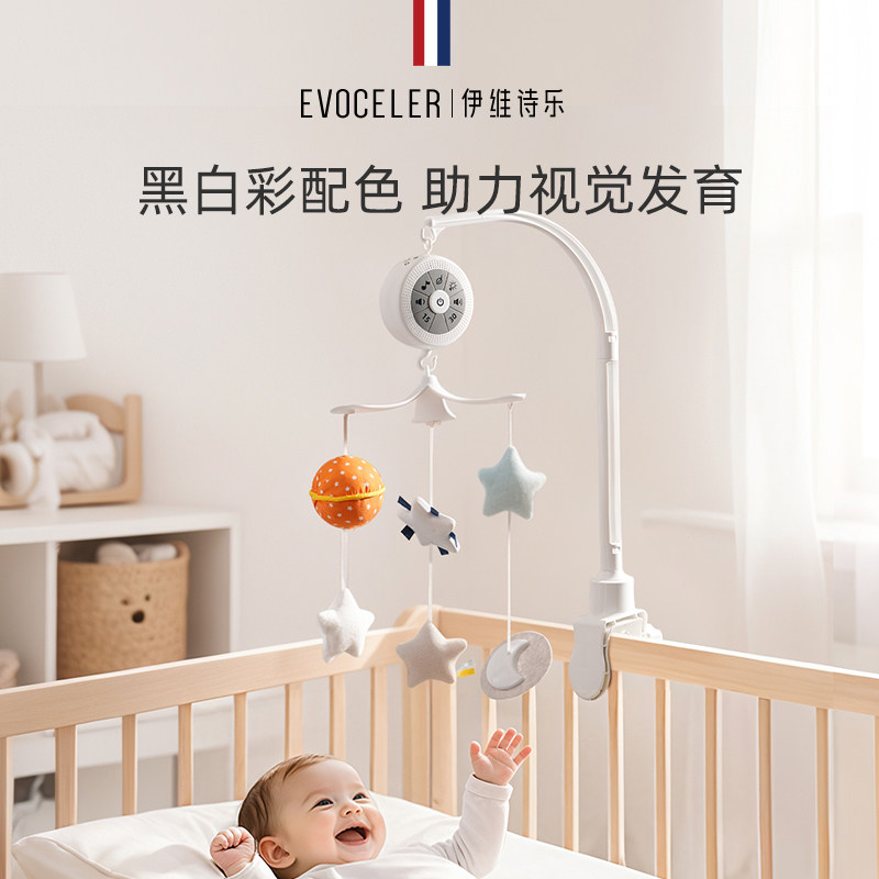 📚 英国evoceler婴儿床摇铃支架围栏车载挂件推车玩具悬挂式可旋转