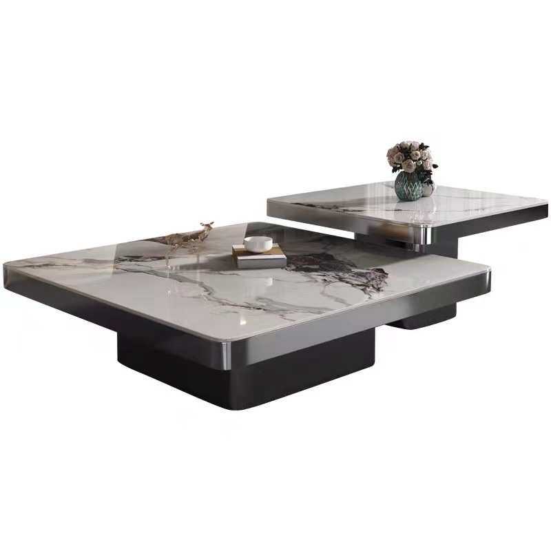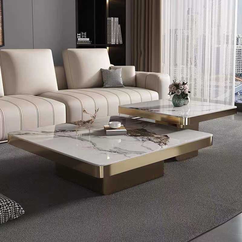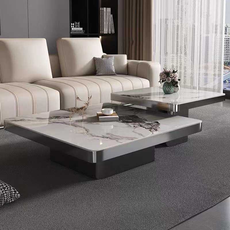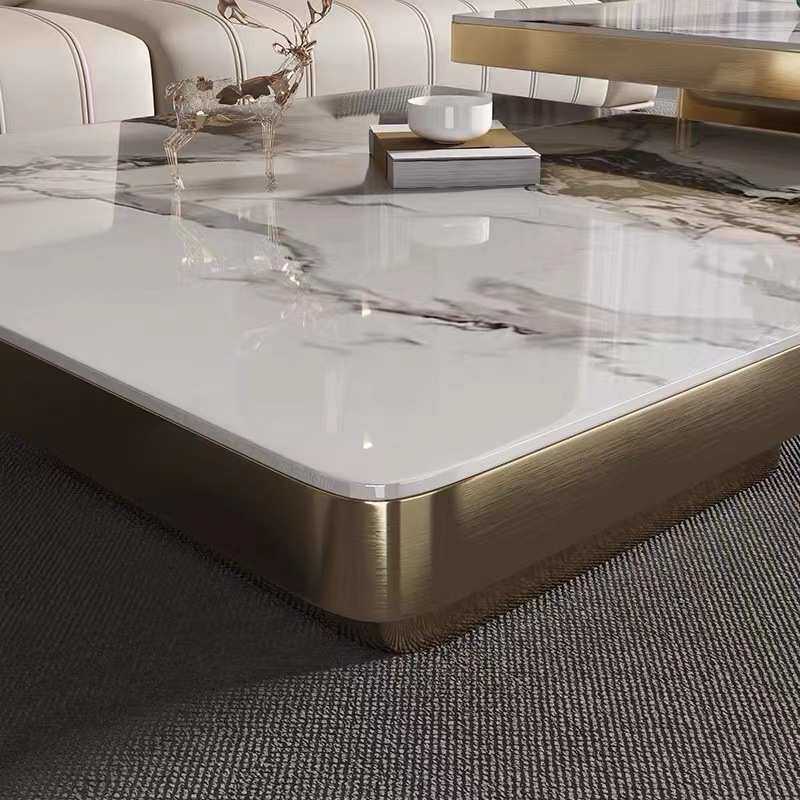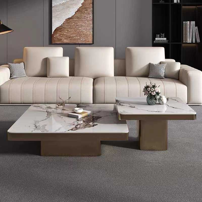 📚 轻奢亮光岩板茶几现代简约意式家用客厅高级设计大小组合茶桌新款