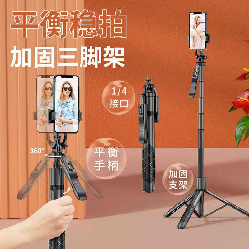 📚 蓝牙自拍杆1.7M运动DV摄影三脚架防抖握把户外直播摄影手机自