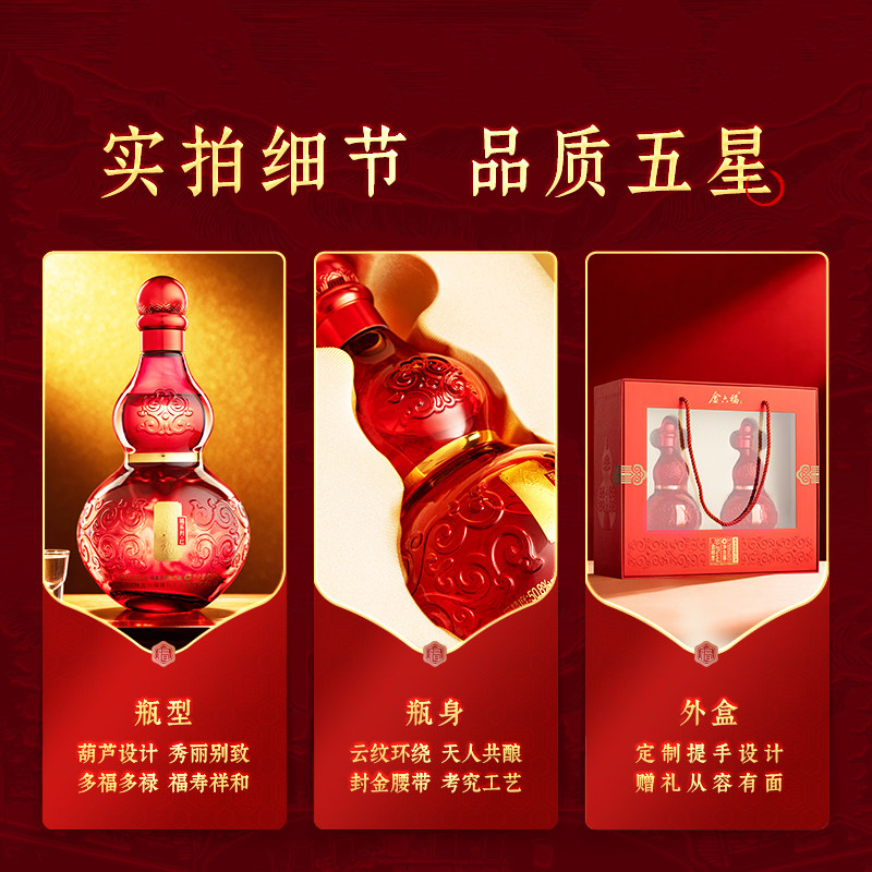 📚 金六福酒福系列红礼盒年货50.8度葫芦瓶绵柔浓香纯粮自饮白酒送礼