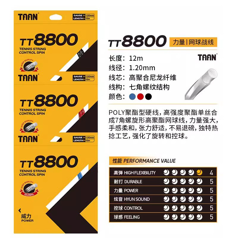 📚 TAAN泰昂网球线8800七角聚酯弹力截面旋转超强控制 硬线网球拍线