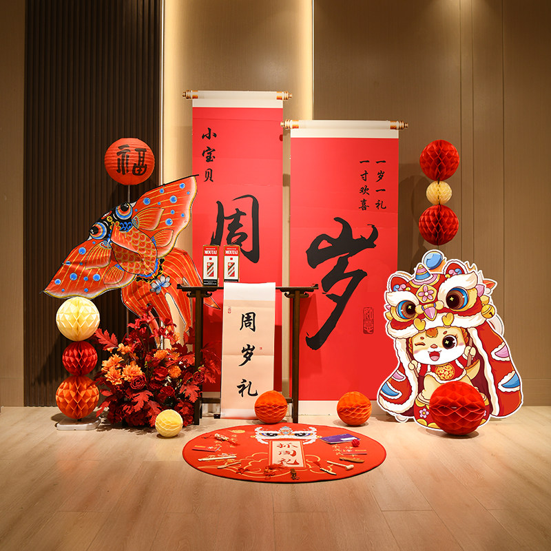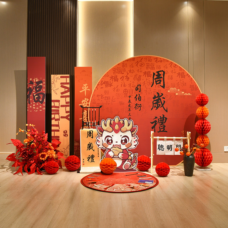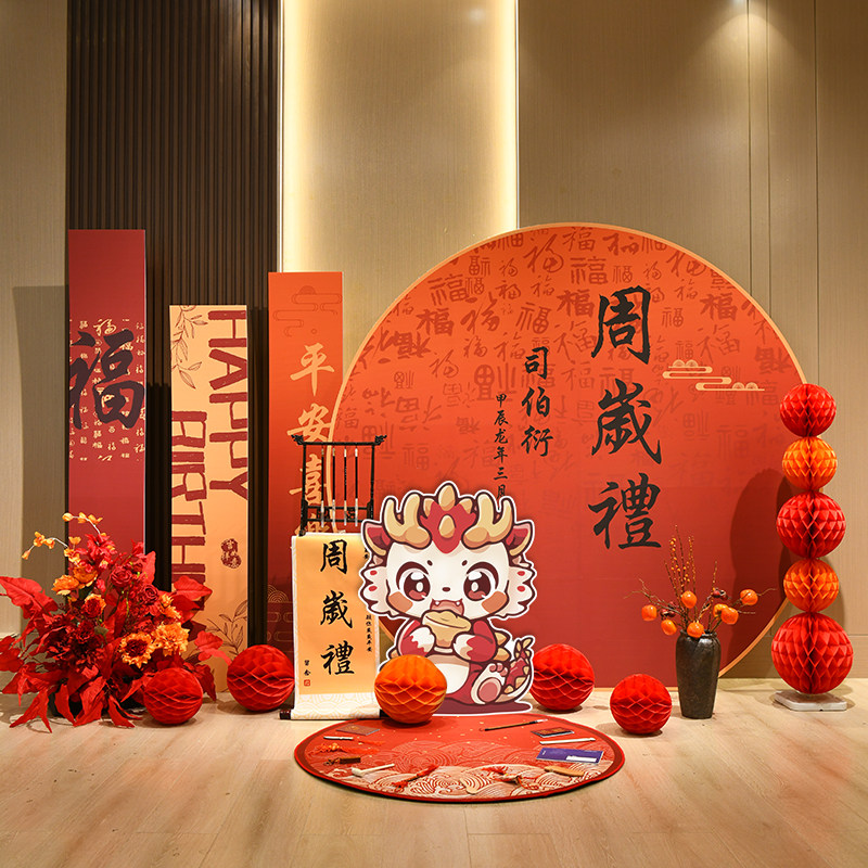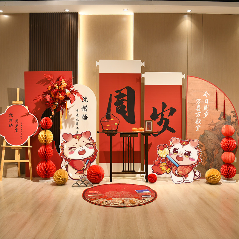 📚 定制新中式周岁生日布置装饰kt板周岁宴男宝龙宝宝周岁礼场景