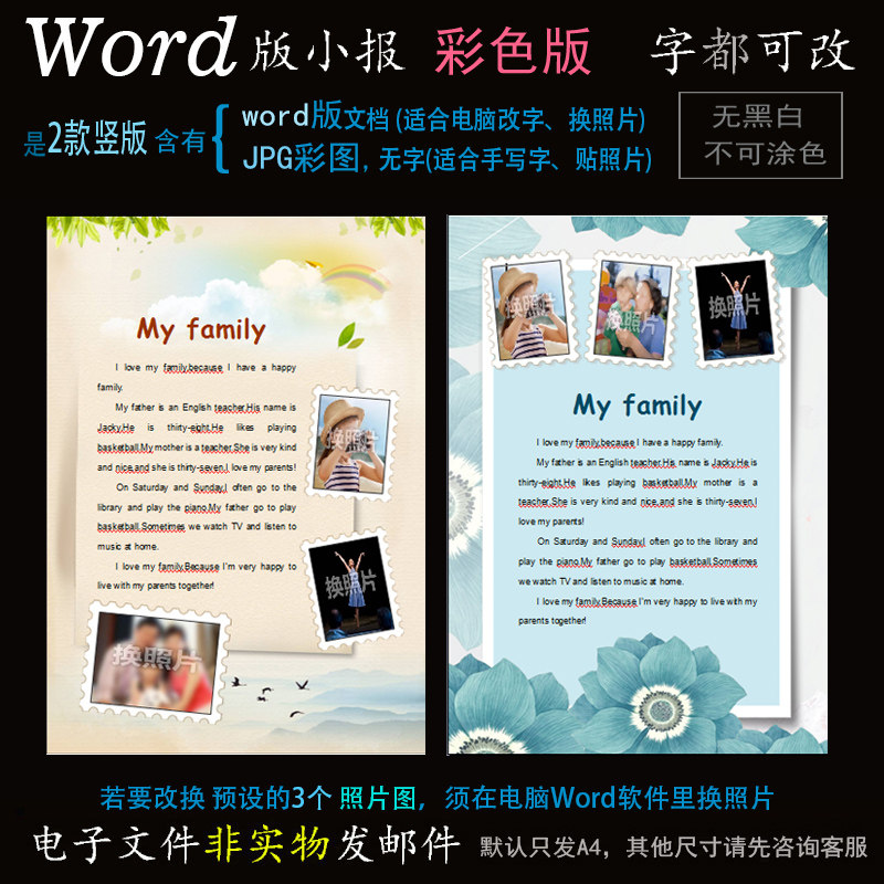 📚 y102英语竖版电子小报word模板电脑手抄报个人简介照片版式简报