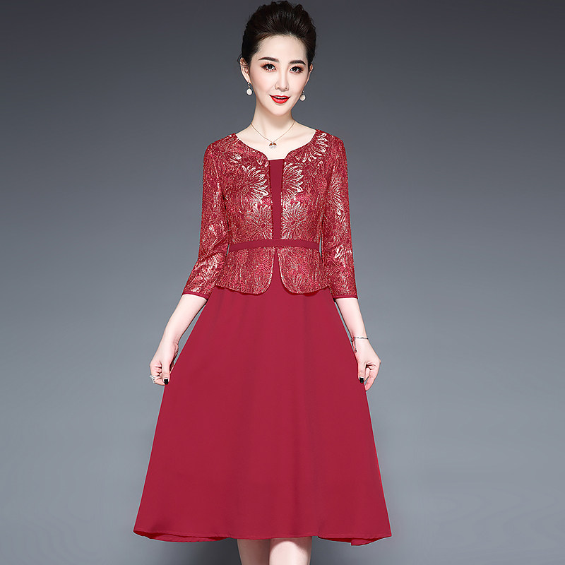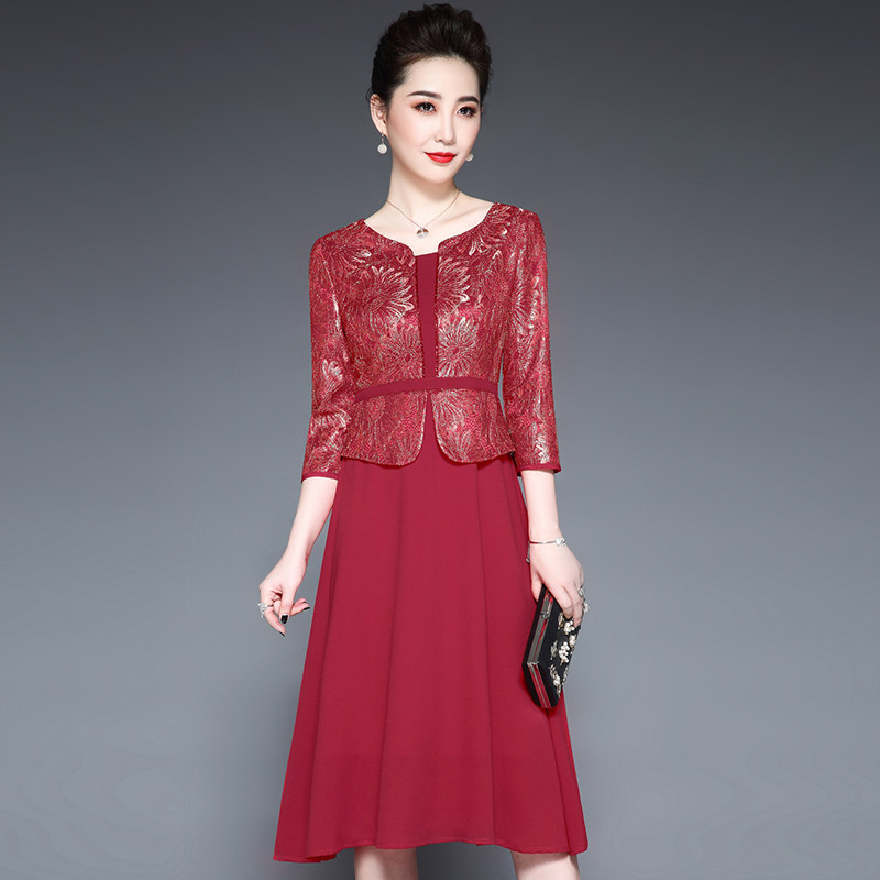 📚 喜庆妈妈装结婚母亲礼服连衣裙喜婆婆婚宴装丈母娘婚礼服高贵岳母