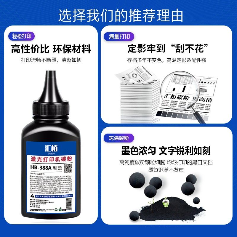 📚 汇栢适用惠普墨粉激光打印机墨粉M128a/fp p1106 HP1007硒鼓添加粉M1213nf/M228fw/M1216nfh通用碳粉388a墨盒