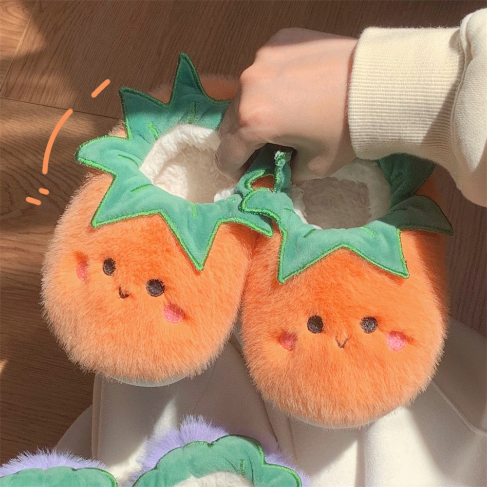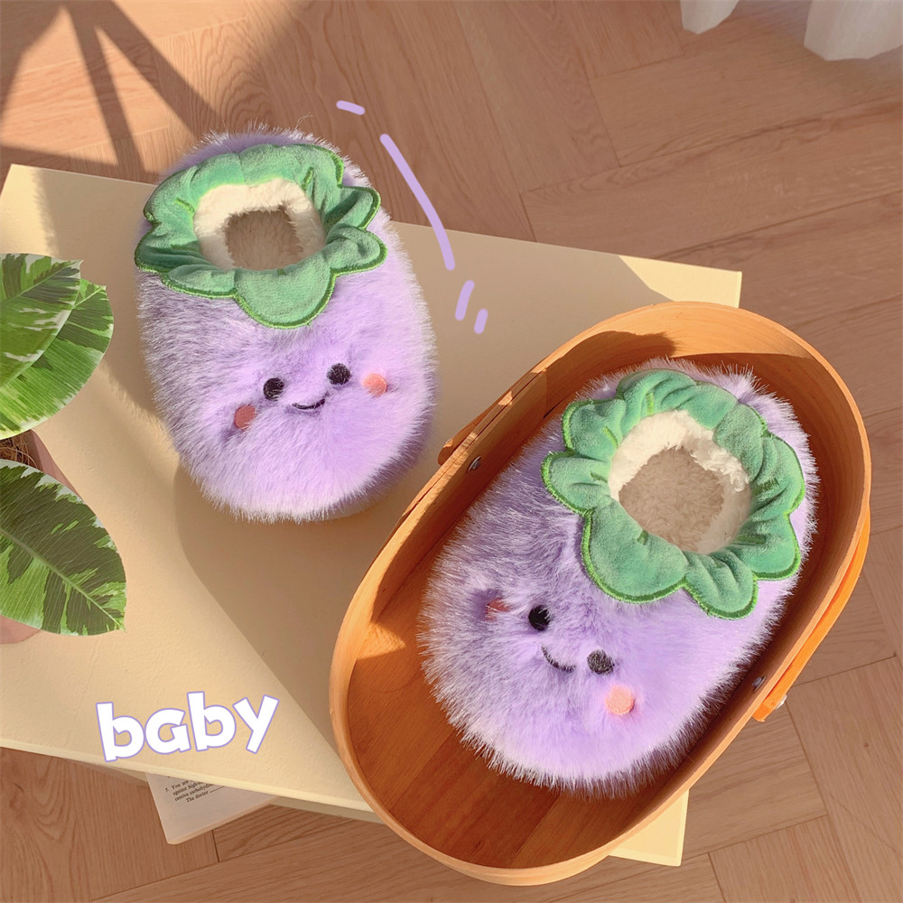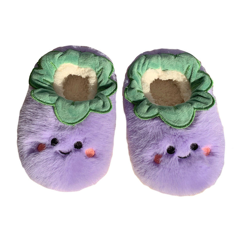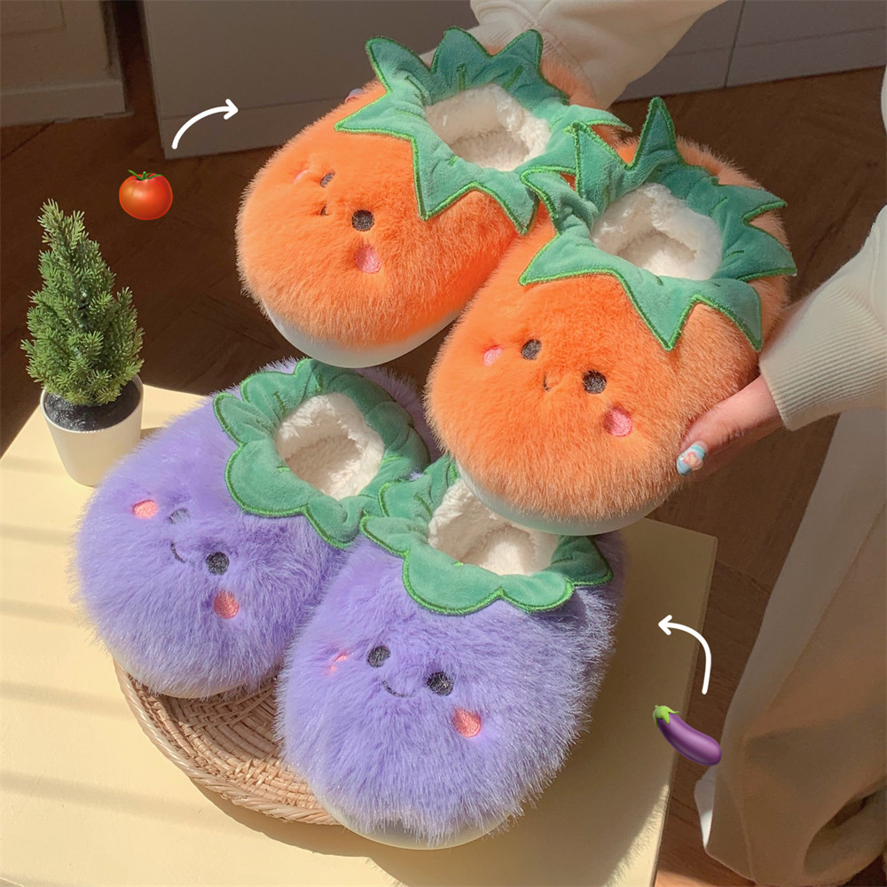 📚 细细条女冬个性创意可爱茄子亲子棉拖鞋保暖防滑厚底毛毛月子鞋