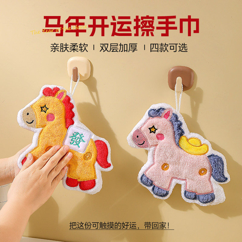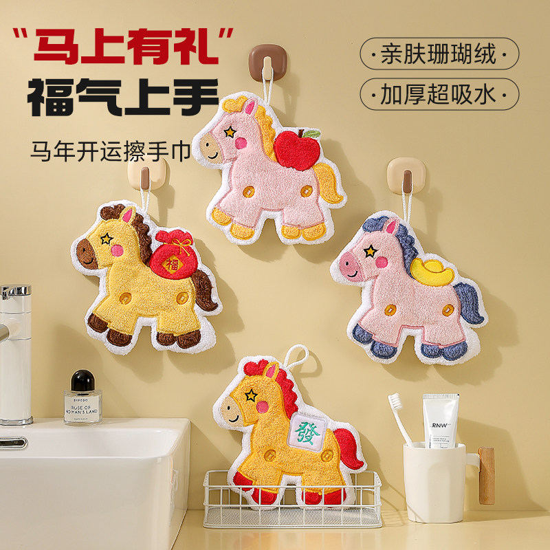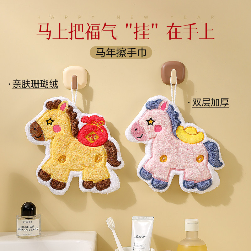 📚 马年擦手巾挂式可爱高颜值新年擦手毛巾厨房卫生间珊瑚绒吸水加厚