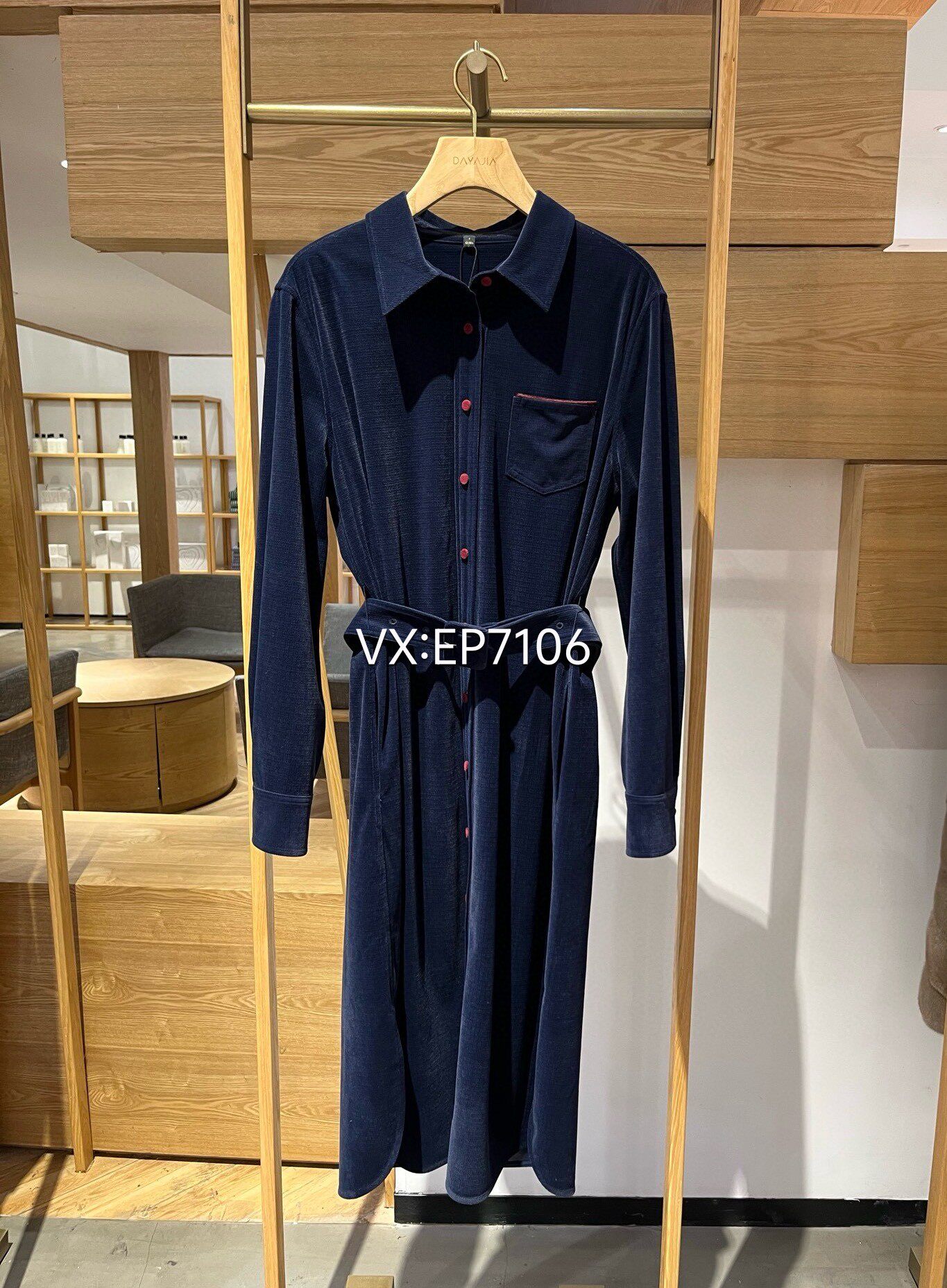 📚 大雅家秋冬款藏青色撞色可拆卸腰带衬衫连衣裙 HFKAA4321A-2799