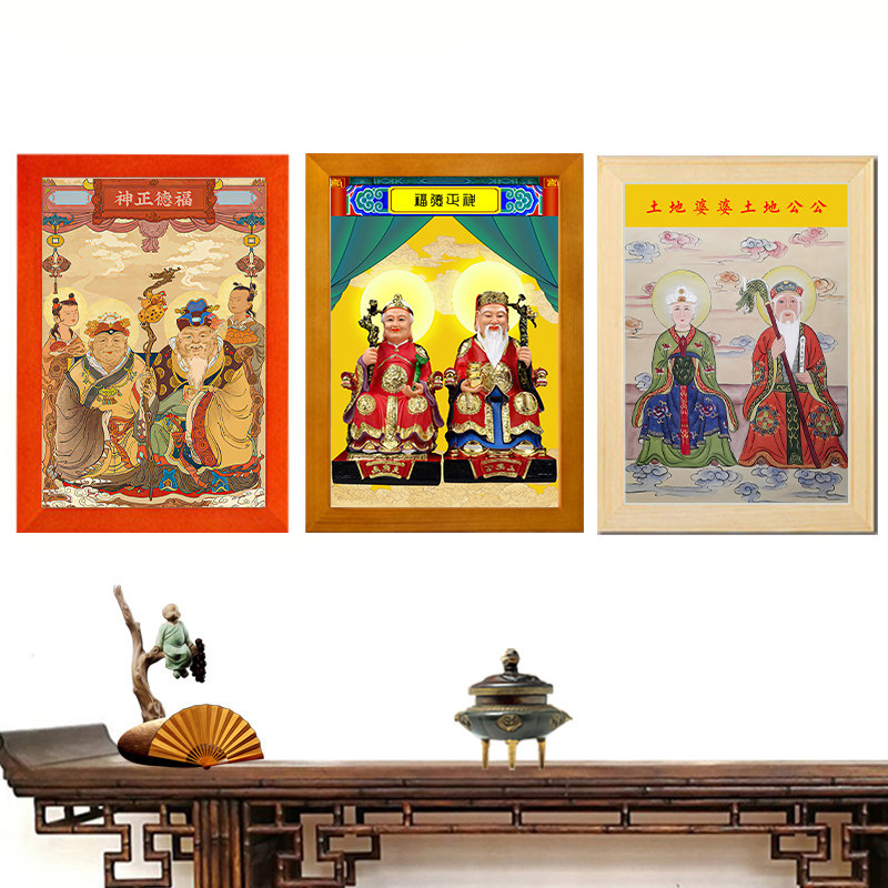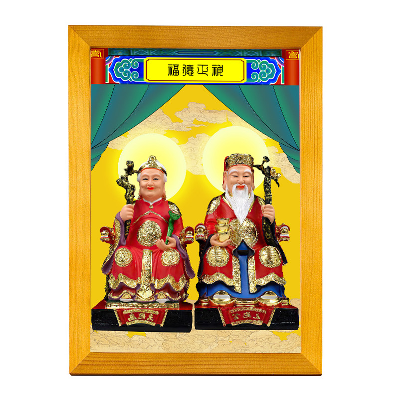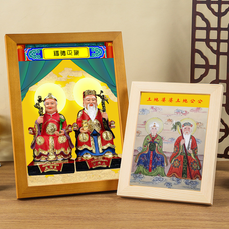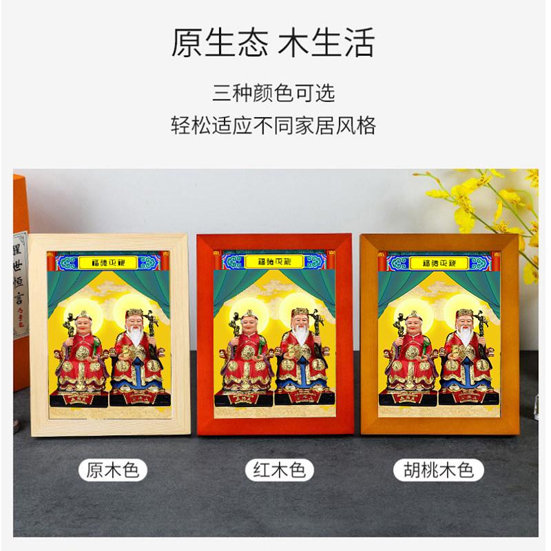 📚 土地公婆画像实木框摆件福德正神客厅玄关中式人物土地爷装饰挂画